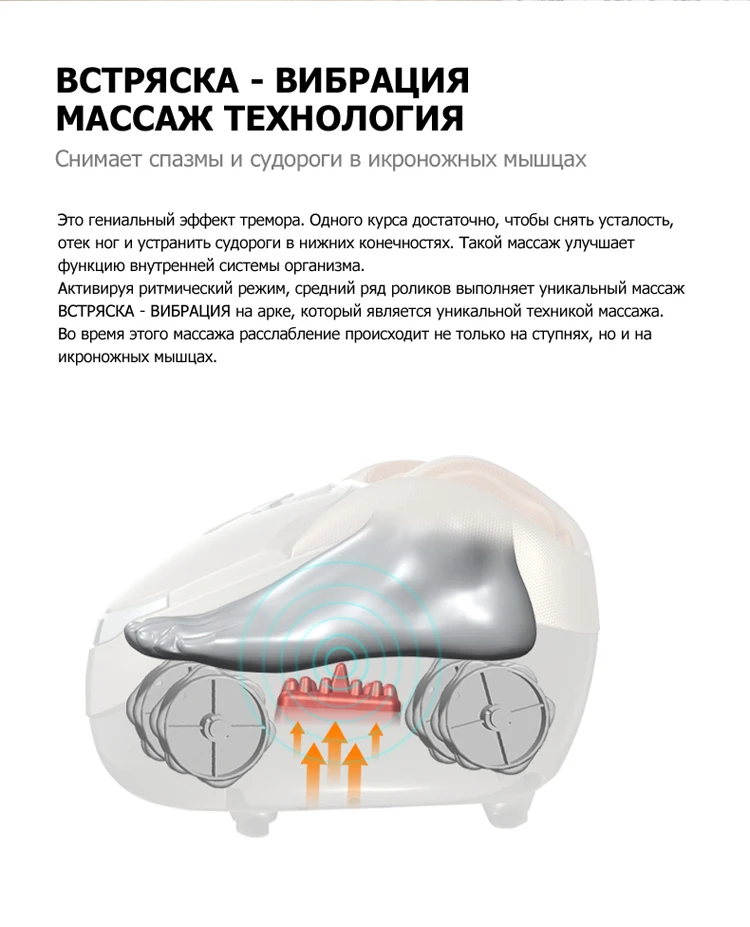 1. Мощный вибрационный массаж в середине стопы, запатентованный дизайн, массажная технология нового поколения; 2. Роликовый разминающий массаж с передней и задней подошвой стопы; 3. Большой воздушный компрессионный массаж подушки безопасности; 4. Функция дальнего инфракрасного нагрева, быстрая скорость нагрева, хороший нагрев Компресс эффект; 5. Применимые люди: нездоровые люди; люди среднего и пожилого возраста; долгое время стоя, спортсмены и т. Д.