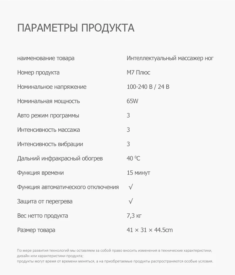 Бренд: MARESE Наименование товара: Интеллектуальный массажер для ног; Материал: АБС + хлопок; Питание: 100-240 В/65 Вт/CE Сертифицированный адаптер питания; Тип штекера: стандарт ЕС, стандарт США; Включает: 1 массажер для ног 1 руководство на английском языке