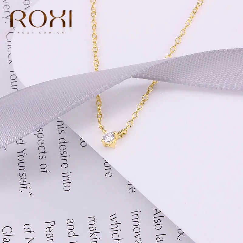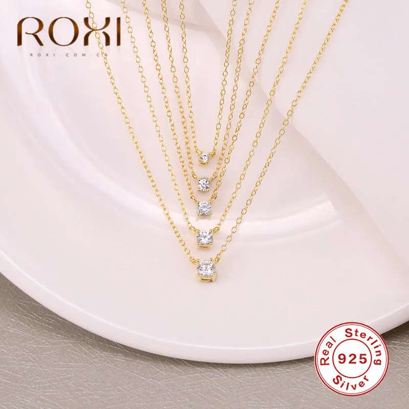 ROXI Настоящее серебро 925 пробы кулон ожерелье Сияющий зубец Установка кубический циркон Кристалл Ожерелье Длинные ключицы ожерелья цепи