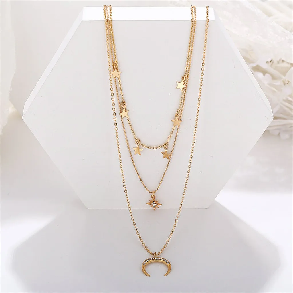Пятиконечная подвеска цепочка для ключицы винтажное трехслойное ожерелье со звездой и полумесяцем