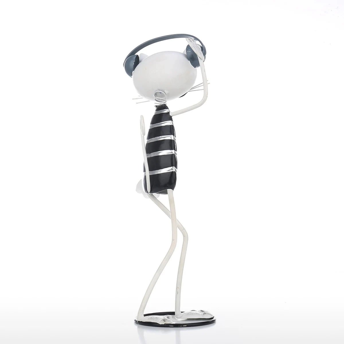 Животное Скульптура:Кот из мультфильма прослушивает музыку в наушниках, а руки из-за антропоморфного размахивали вверх и вниз, погружаясь в музыкальный мир.