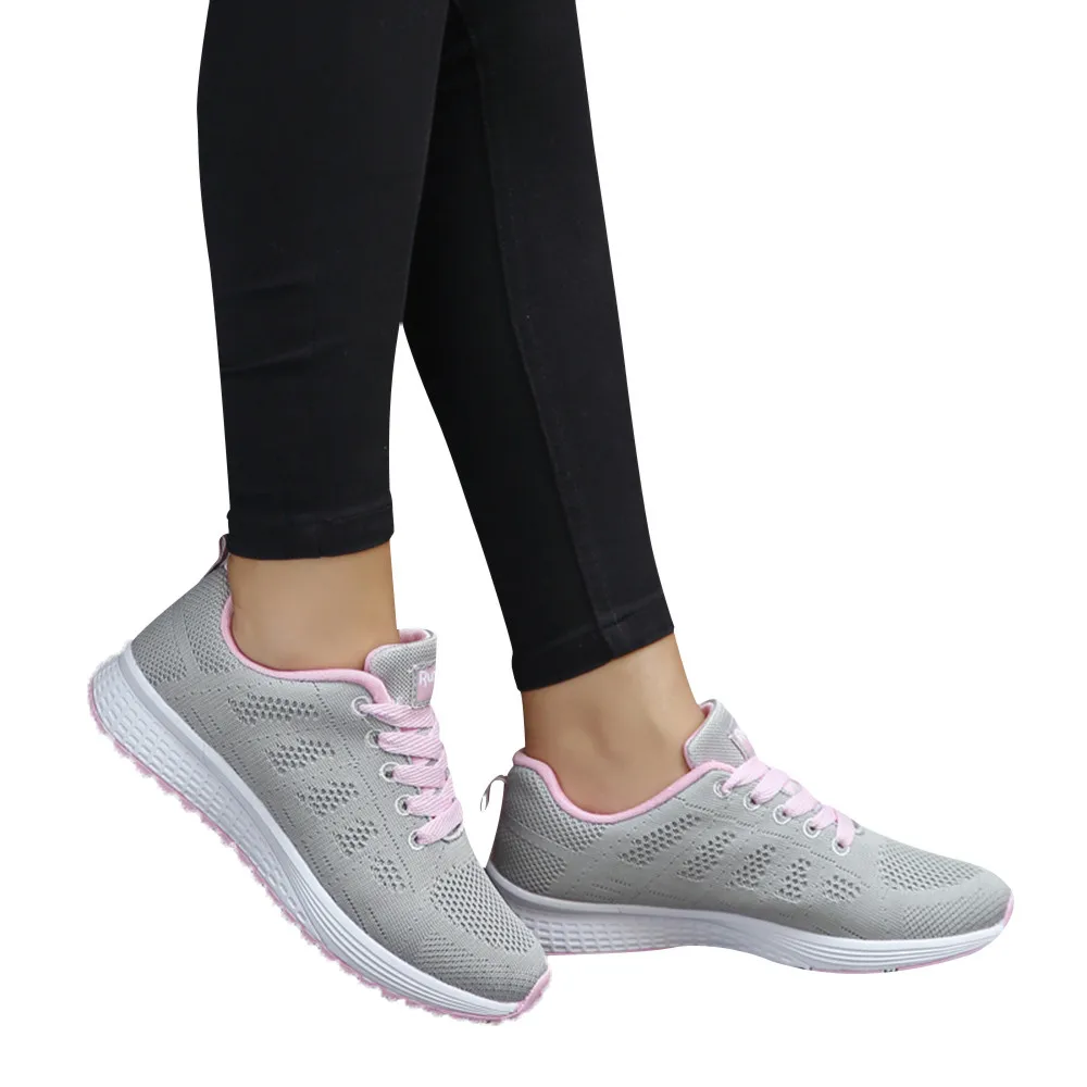 Женские Модные сетчатые кроссовки на плоской подошве с круглым поперечным Ремешком; кроссовки для бега; повседневная обувь