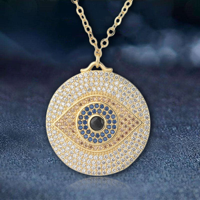 Модное ожерелье с подвеской в виде голубого сглаза, роскошный дизайн, длинная цепочка из кубического циркония, золото, Турция, ювелирные изделия для женщин, подарок