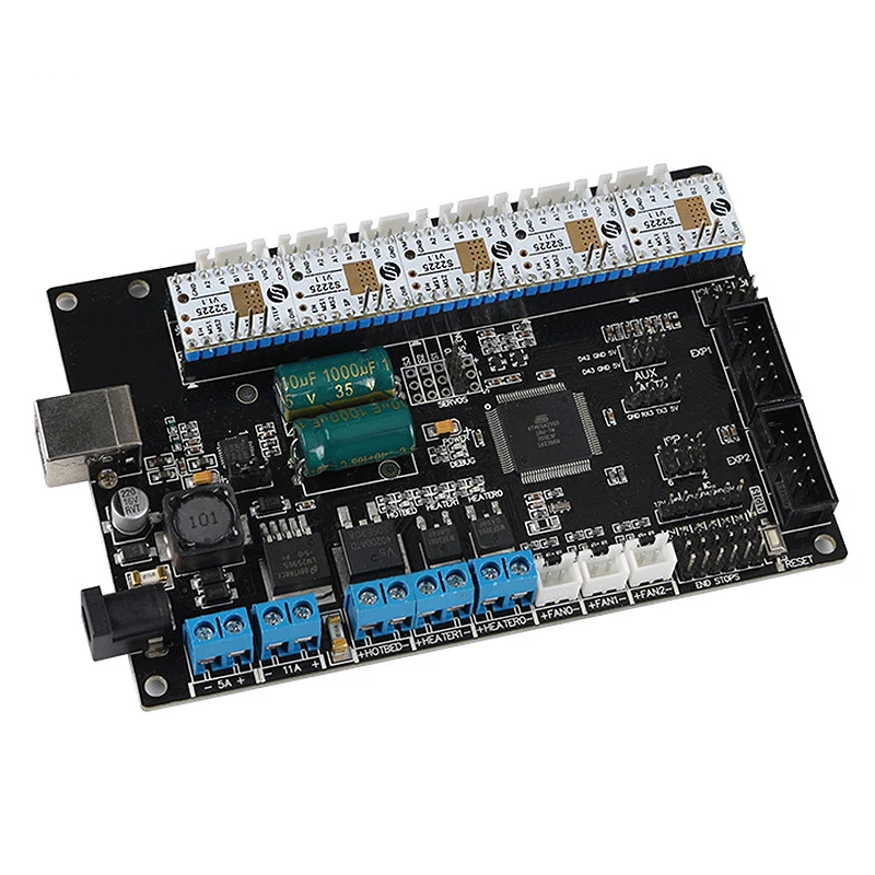5, поддержка до 5 драйверов двигателя, поддержка драйвера A4988/ DRV8825 /TMC2100: схема привода двигателя не интегрируется с печатной платой. Вы можете изменить любой драйвер шагового двигателя, который вам нужен, проще в эксплуатации. (Поддержка драйвера A4988/ DRV8825 /TMC2100)