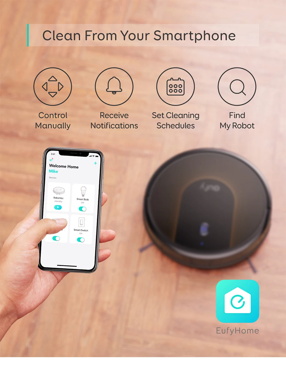 Convenient ControlsThe Eufyhome app lets you accomplish all your cleaningNeeds from your smartphone.