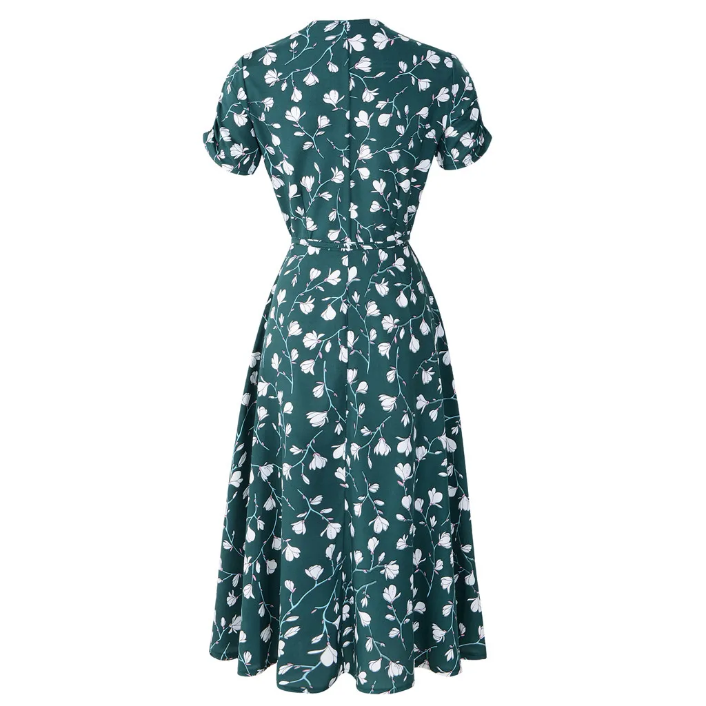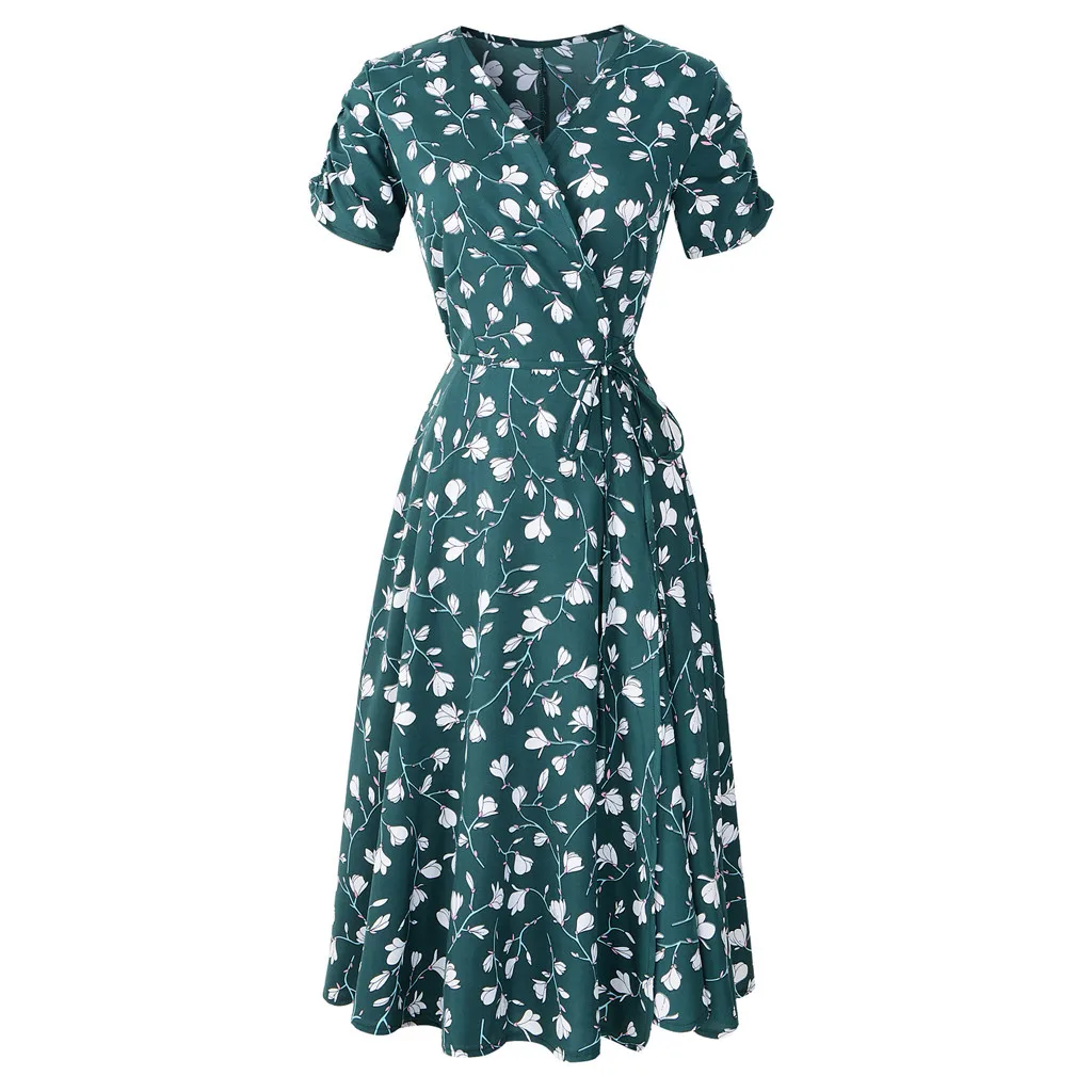 Женское праздничное платье с цветочным принтом и v-образным вырезом; Женские вечерние платья с короткими рукавами