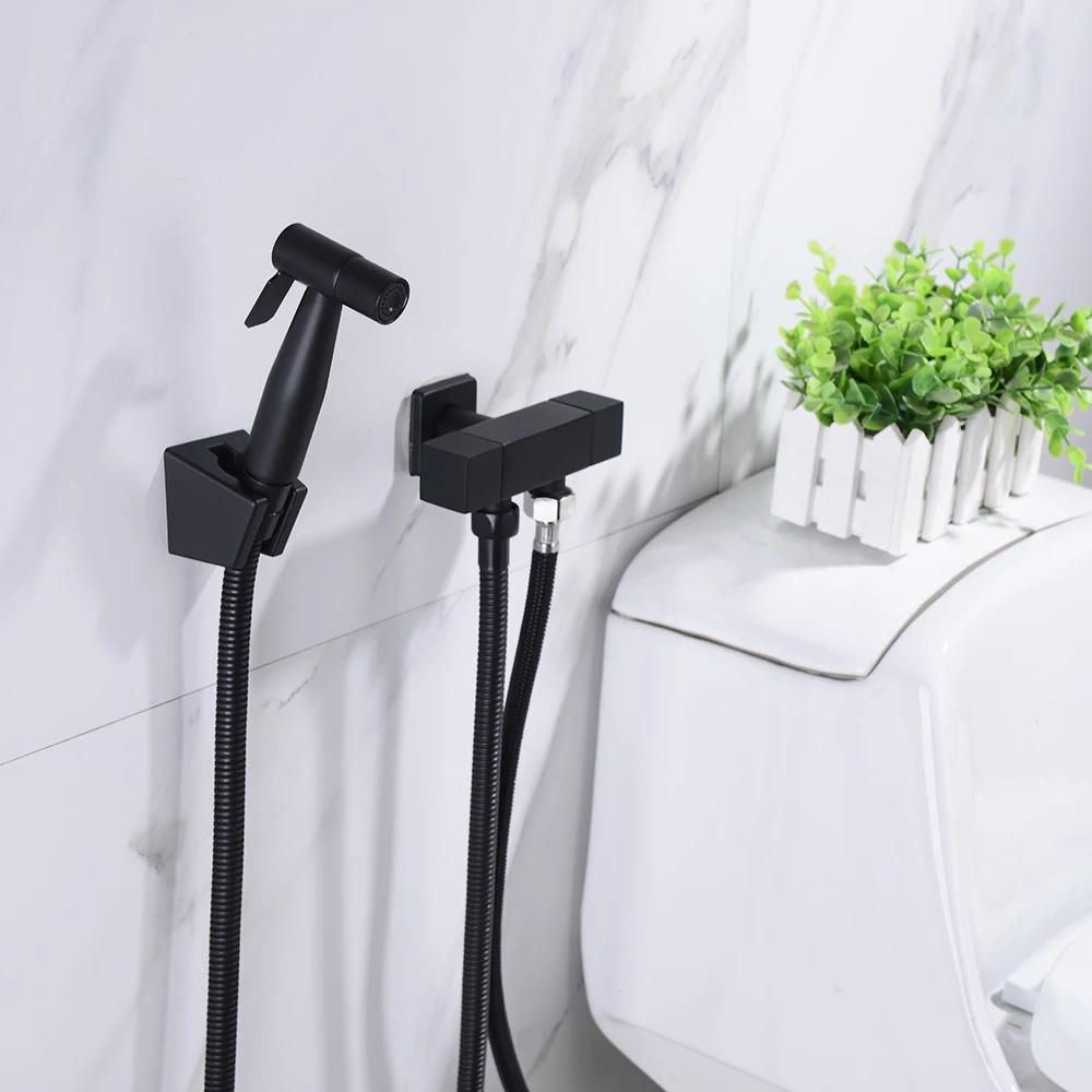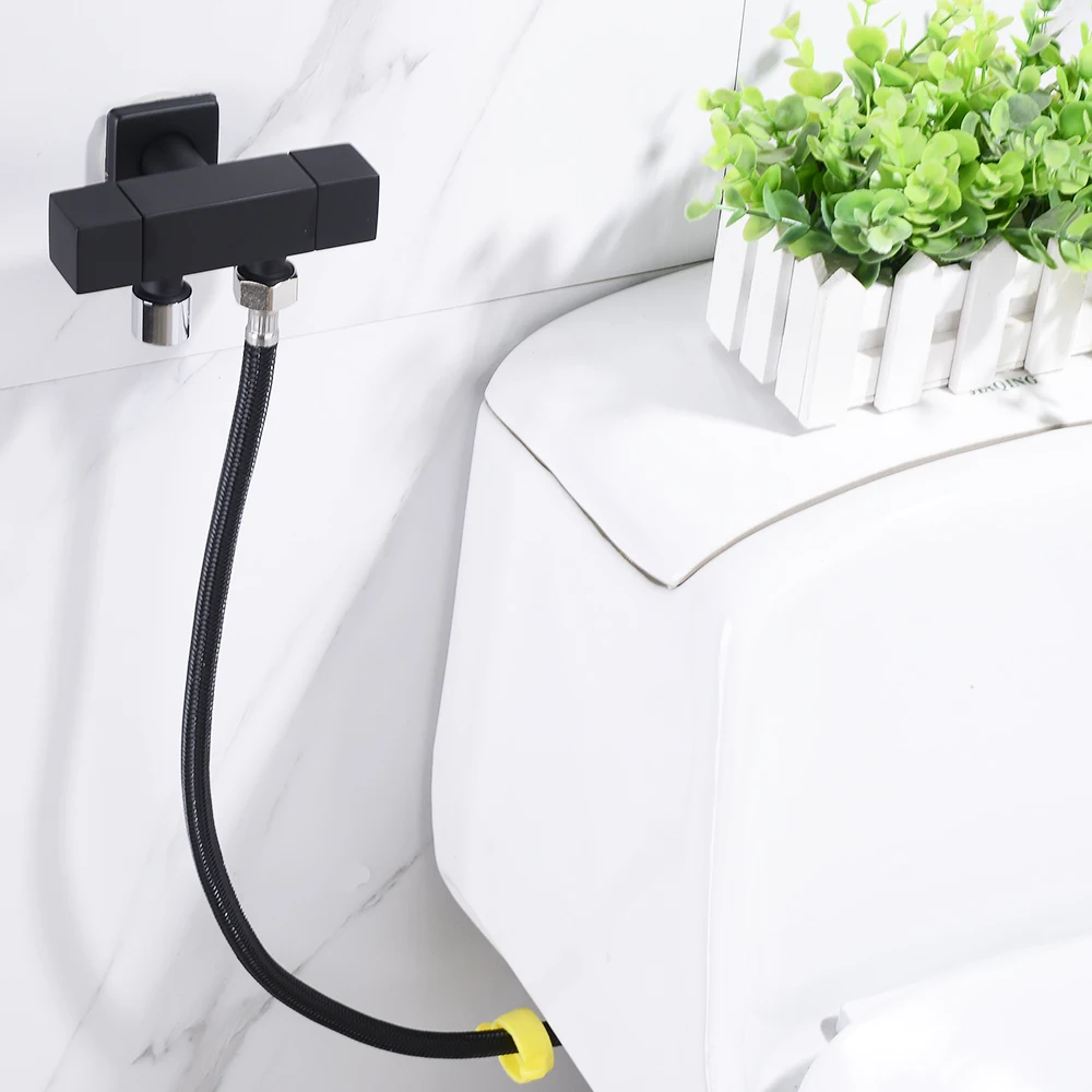 Латунь ванная комната квадратный матовый черный двойной выход G1/2 Многофункциональный водопроводный клапан распылитель комбинация с комплект для биде и аэратор