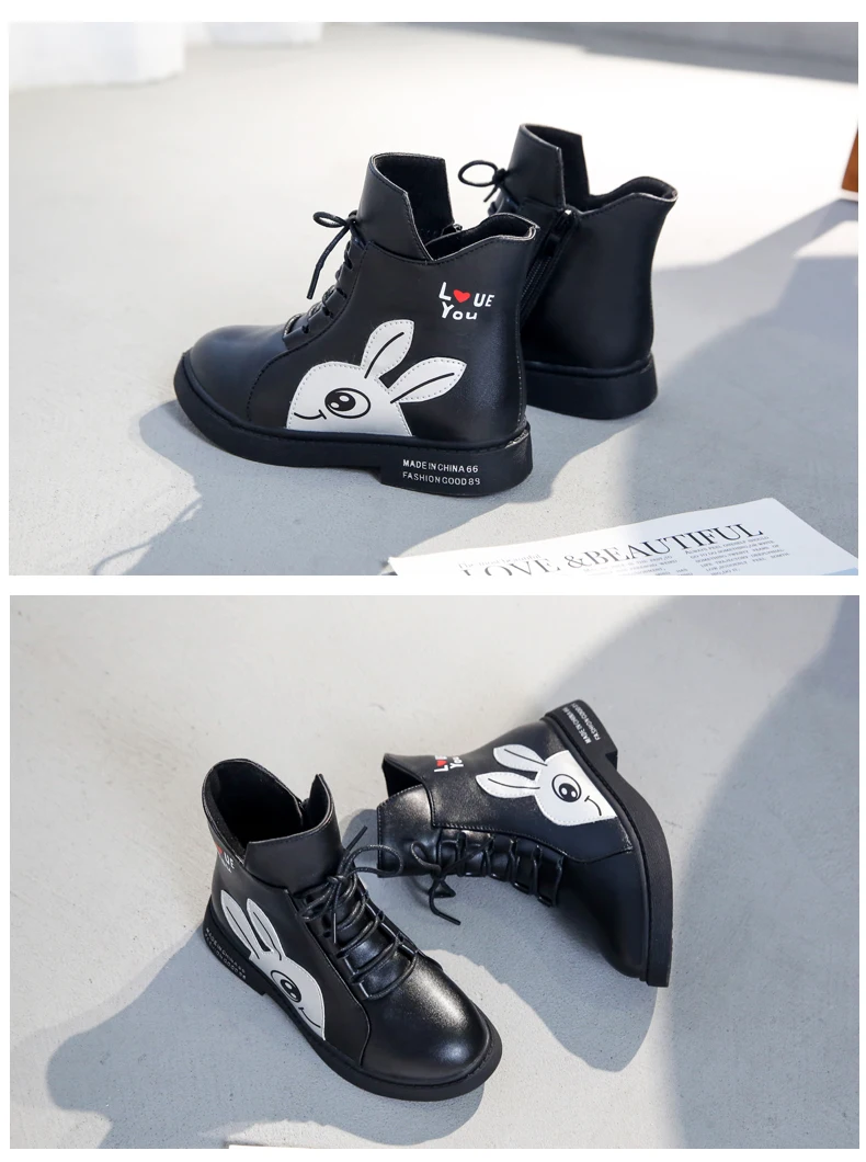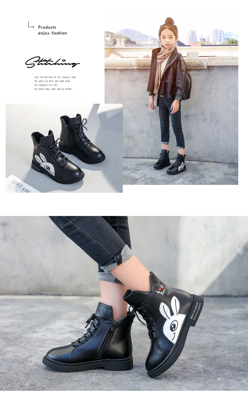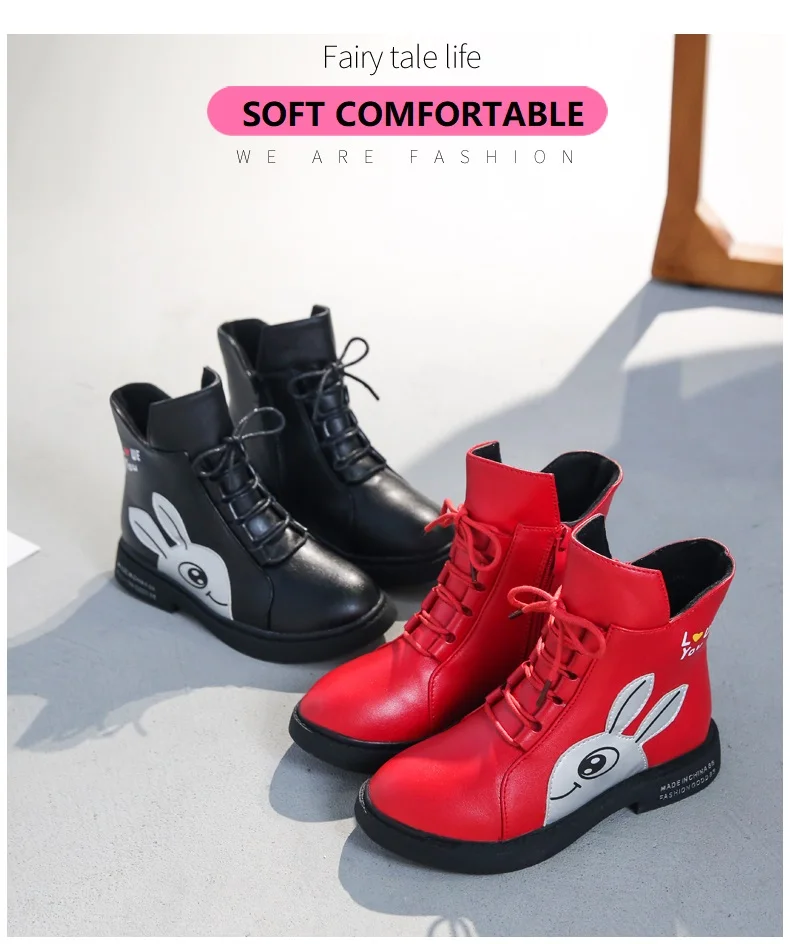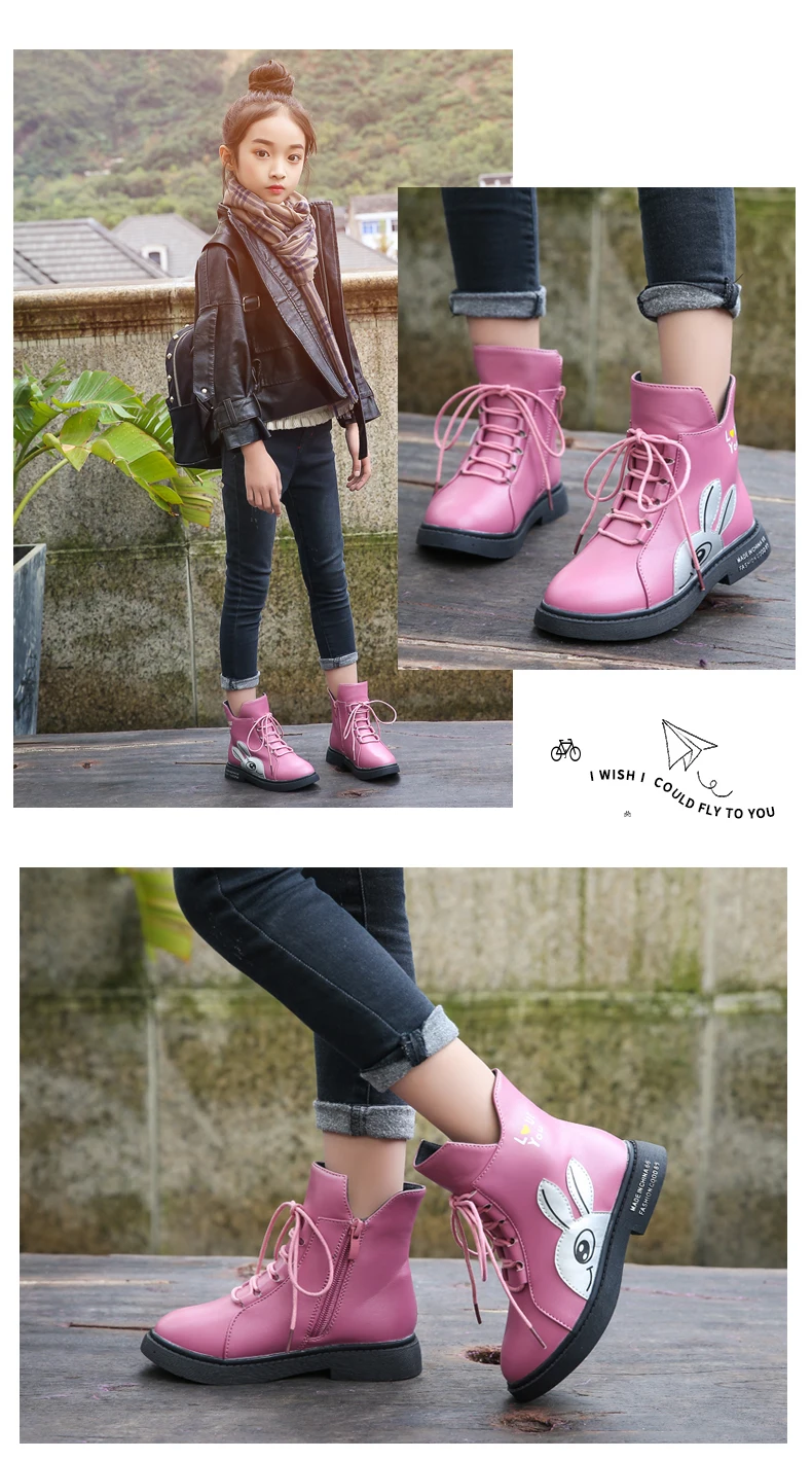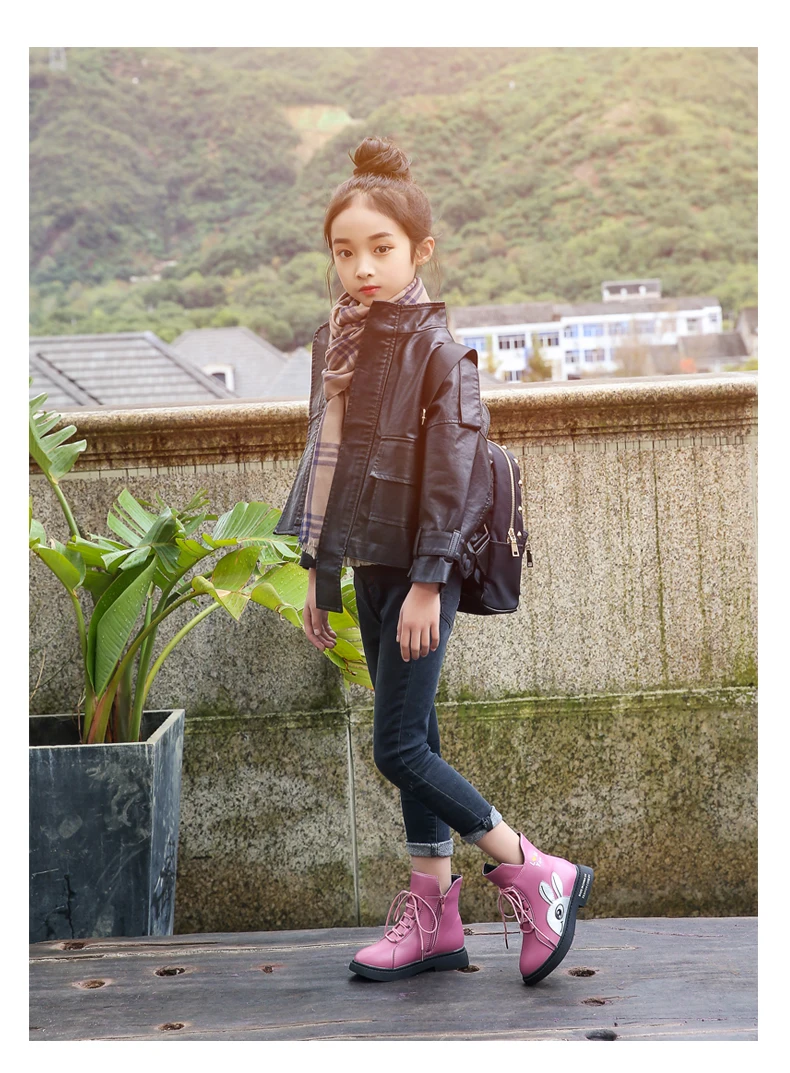 Зимние сапоги для девочек; Новинка 2020 года; Сезон весна; Модная обувь для девочек в британском стиле; Детские кожаные теплые плюшевые ботинки с милым рисунком; Большие детские ботинки