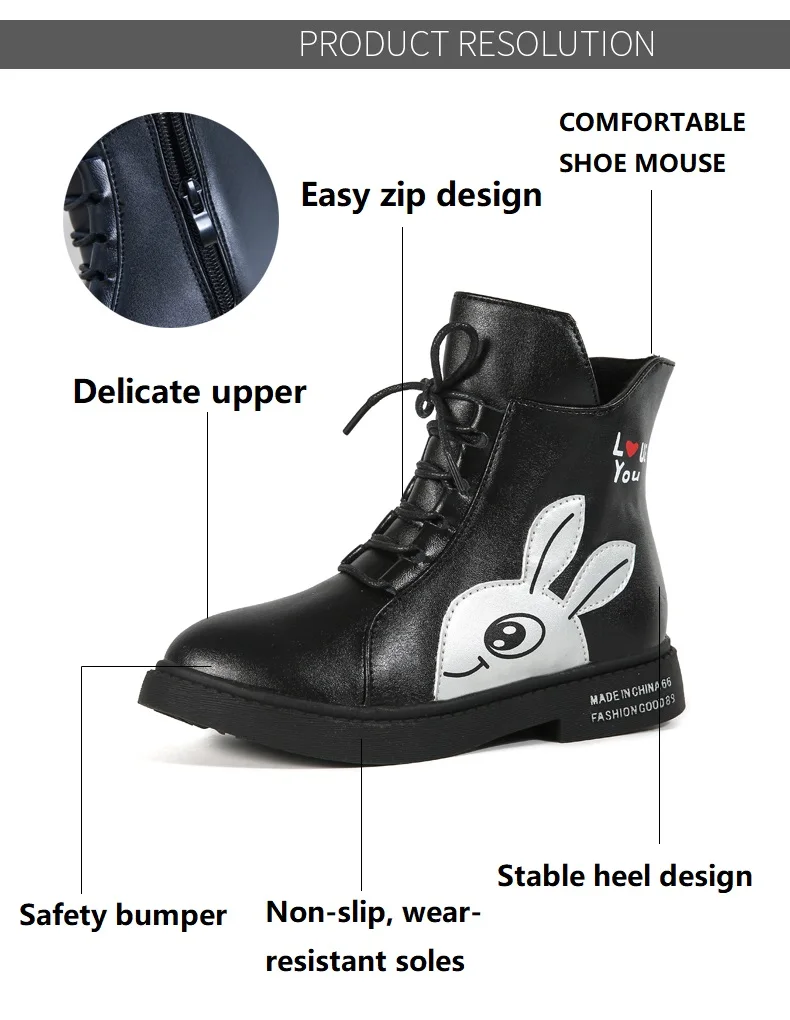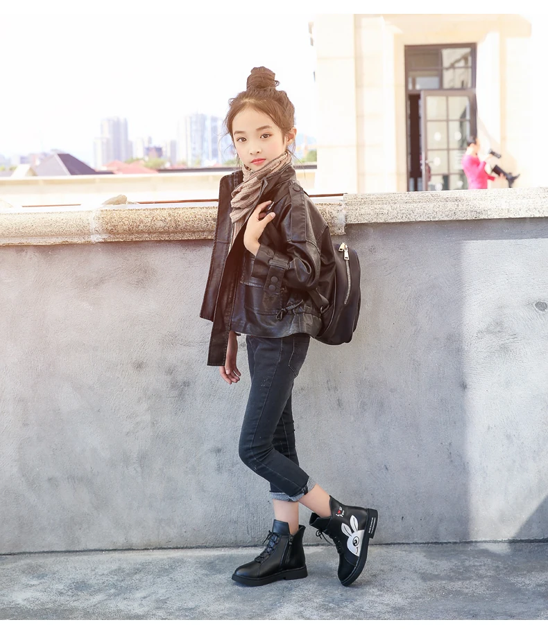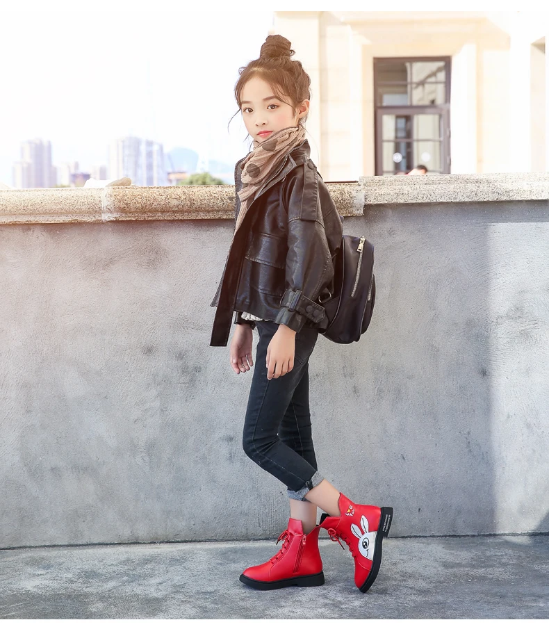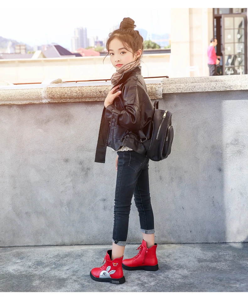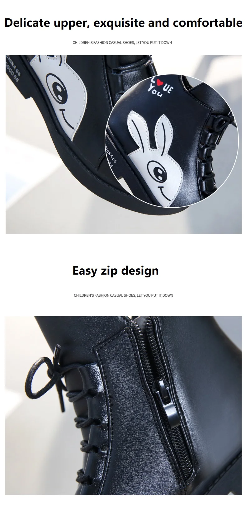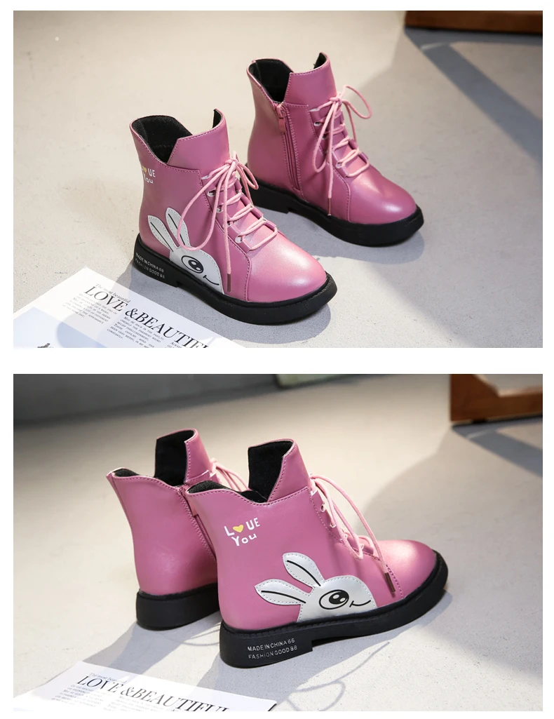 Зимние сапоги для девочек; Новинка 2020 года; Сезон весна; Модная обувь для девочек в британском стиле; Детские кожаные теплые плюшевые ботинки с милым рисунком; Большие детские ботинки