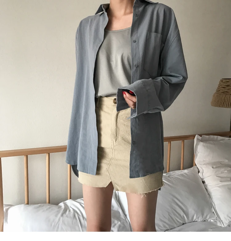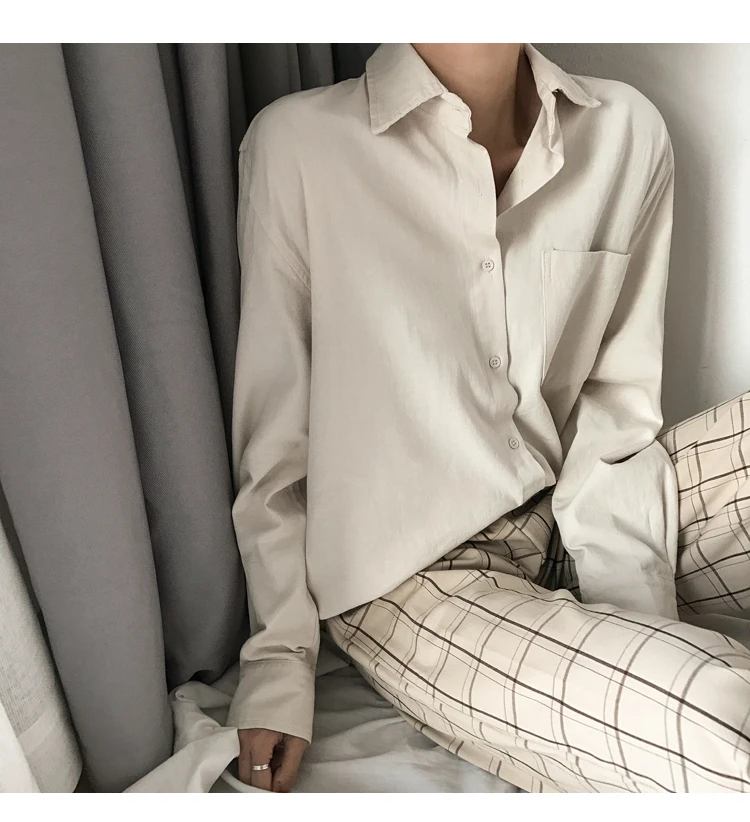 Женская блузка с длинным рукавом LUZUZI, белая блузка из хлопка с длинным рукавом, Повседневная Блузка, лето 2019