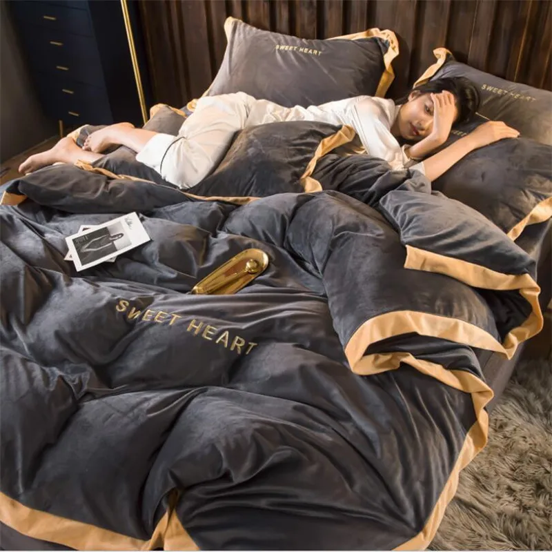 Модный кашемировый Комплект постельного белья со снежинками, комплект постельного белья из 4 предметов, простыня, пододеяльник, фланелевый флисовый 3D рельефный зимний комплект постельного белья
