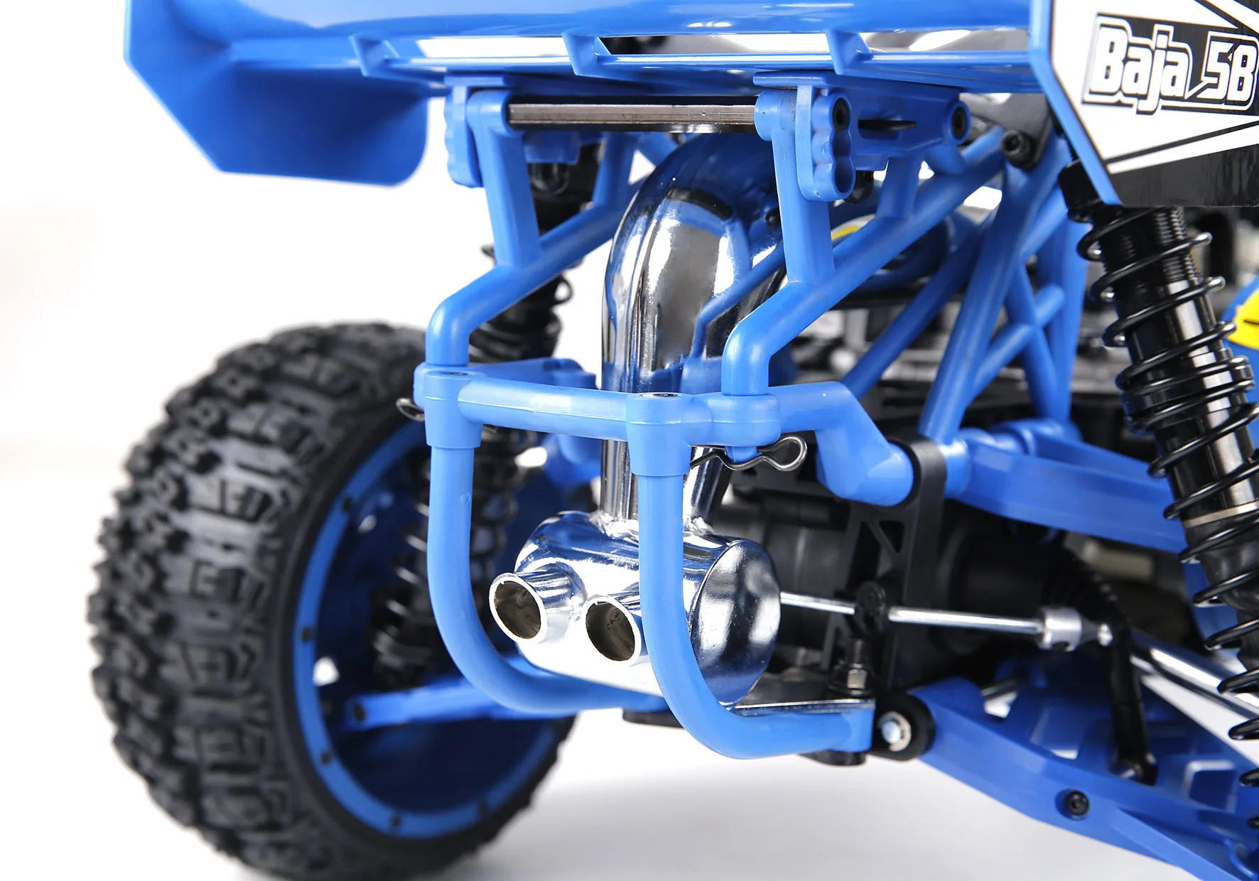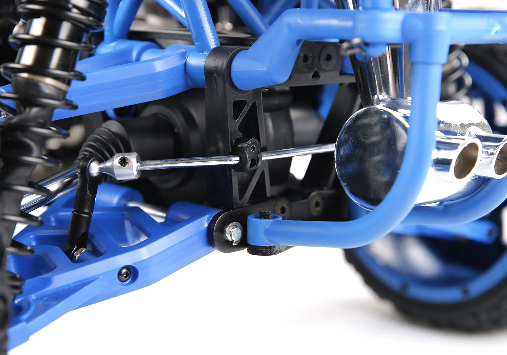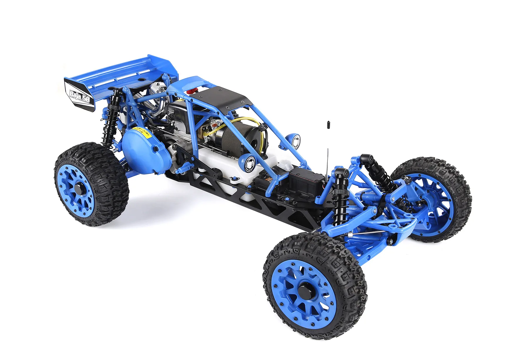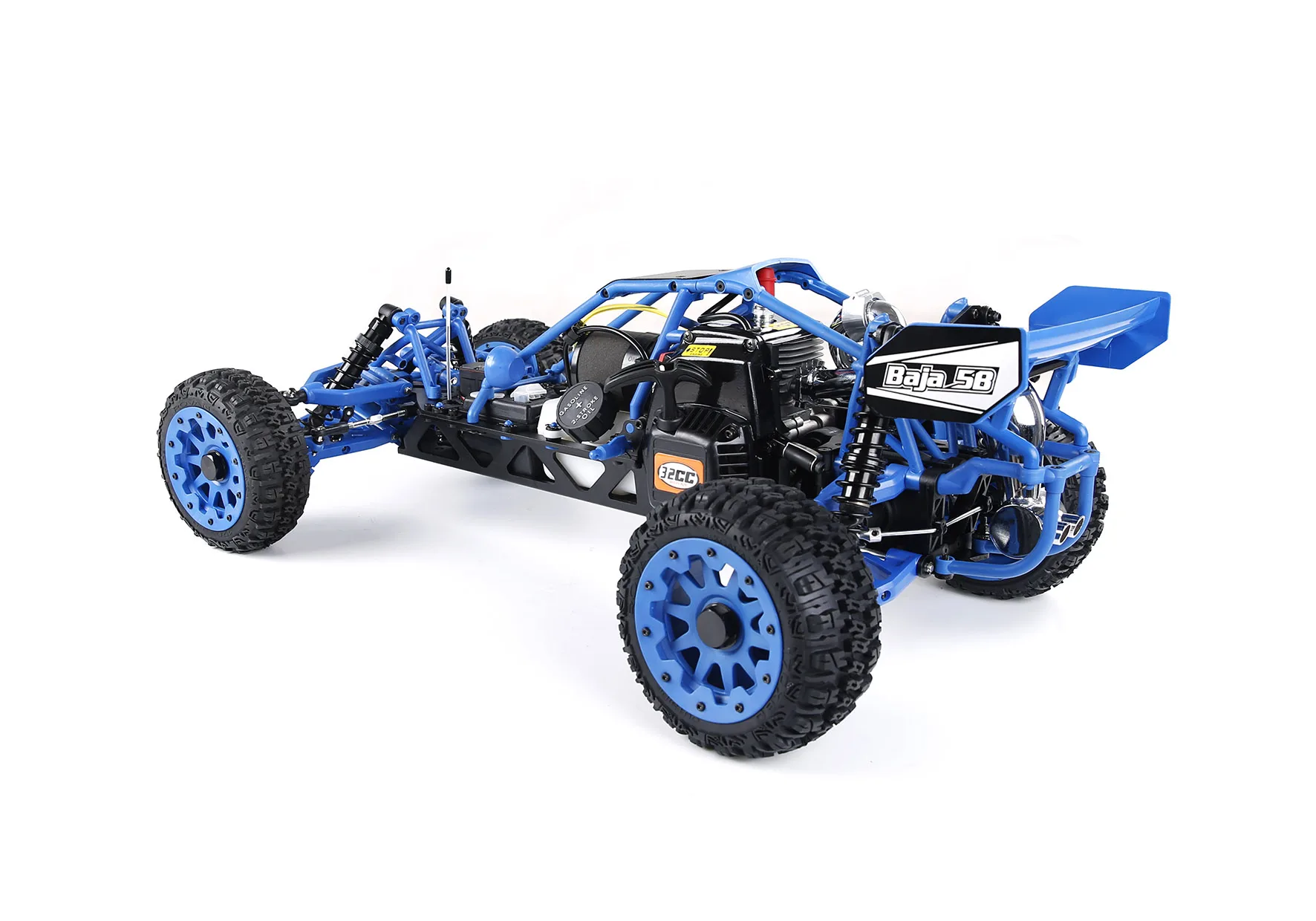 Scale 1: 5 1. 32cc single-cylinder air-cooled two-stroke four-point fixed gasoline engine (standard with Walbro813 carburetor, NGK spark plug) 2.Length x width x height LxWxH: 817x480x255mm 3.Front track 395mm / rear 400mm 4, wheelbase 570mm 5.Rear wheel drive 6, rear axle brake 7.18KG full metal gear throttle servo 8, 45KG metal gear steering servo (plastic version) 9.Second generation SS resonance tube 10.Metal differential 11. Three generations of wasteland tires (three generations of high-strength nylon wheels) 12, 6mm shock absorption 14, BER 2.4G LED screen 3 channel remote control 15.New material wear-resistant 8000 rpm clutch 18.Front and rear lever group 19.High strength nylon parts for whole car 20, 9MM half axis (dog bone) 21.Metal clutch tripod 22.New symmetrical steering 23.New matching pot