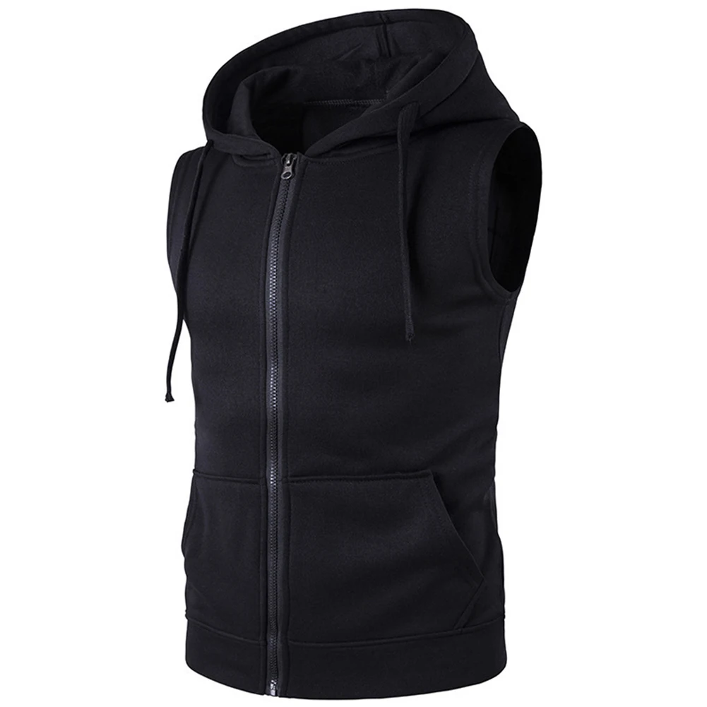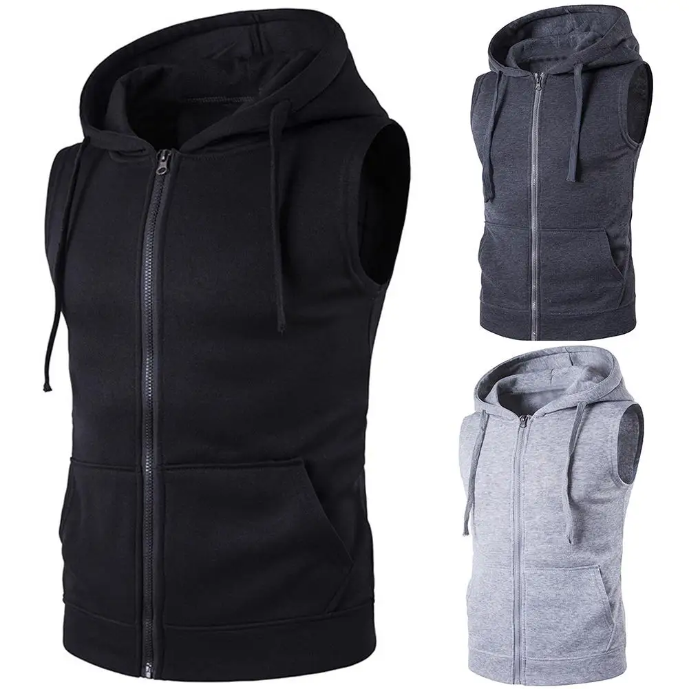 Мужская мода сплошной цвет жилет куртка молния карманы жилет без рукавов толстовки