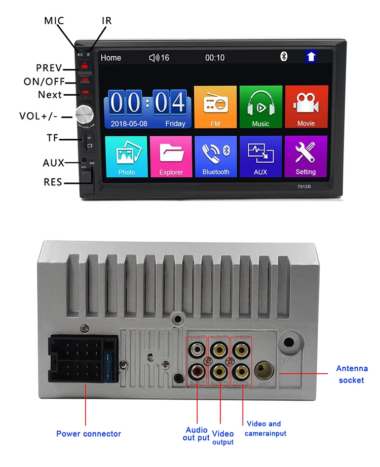 Модель: 7012 B Тип: MP5 Размер экрана: 7 дюймов Мобильное Соединение: для Android / iOS Gps-навигация: не поддерживается Радио диапазон: FM однодиапазонный Радиочастота: 87,5 МГц-108 МГц Одновременный дисплей с двумя экранами: не поддерживается Реверсивный Видео вход: Поддержка Метод обратного обнаружения: обнаружение хвостовой линии Функция напоминания о тормозе: Да Функция управления рулем: Да Bluetooth: поддержка