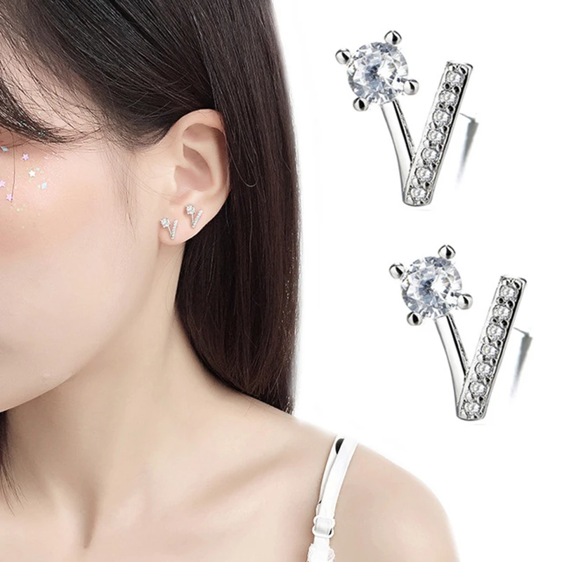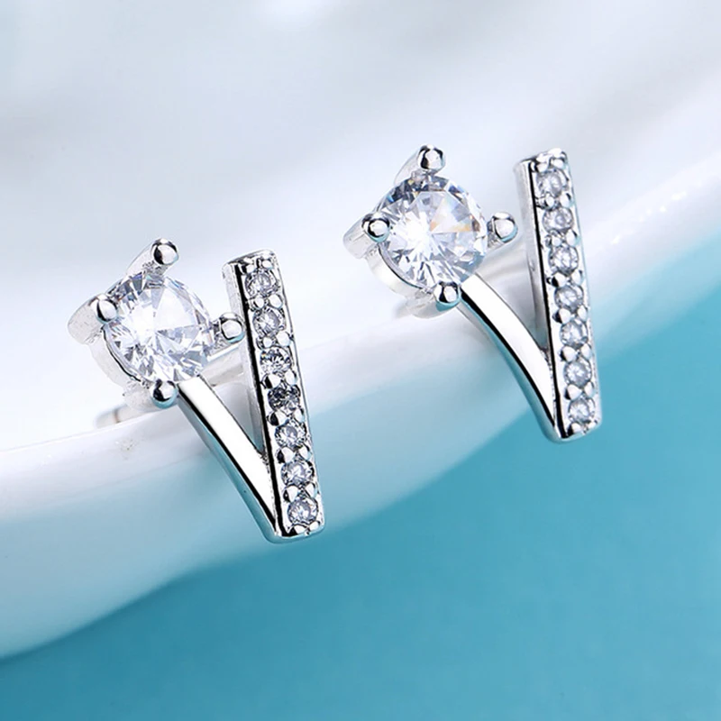 Изысканные геометрические серьги-гвоздики в форме буквы для женщин, ювелирные изделия из стерлингового серебра 925 пробы, массивные серьги Материал: серебристый фианит Размер: как показано Состояние: 100% новый бренд Повод: подарок на свадьбу, день рождения, День святого Валентина