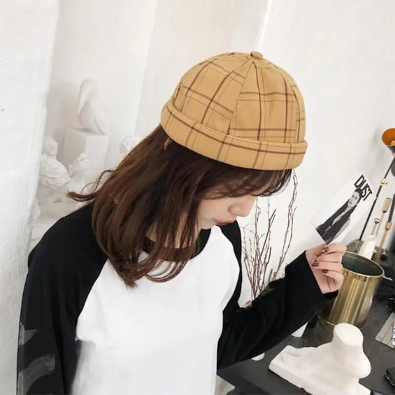 Модная клетчатая Docker Кепка с тыквой для женщин и мужчин на осень и зиму, вязаная шапка без полей, акриловая шапка