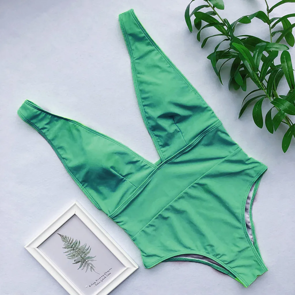 1. Завод Дизайн с зелеными листьями, пикантная и Элегантная Модная интеграция, дизайн с глубоким v-образным вырезом Подчеркивает красоту тела, мягкий и удобный хороший нейлон