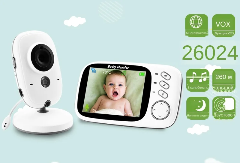 3,2 дюймовый цветной ЖК-дисплей высокой четкости, теперь вы можете четко следить за тем, чтобы ваш ребенок не засыпался.