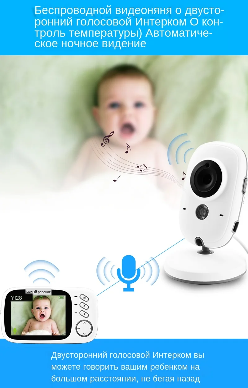 Двусторонняя голосовая связь в реальном времени, теперь вы можете слушать голос ребенка на расстоянии, а также вы можете поговорить с ребенком на другой стороне монитора.