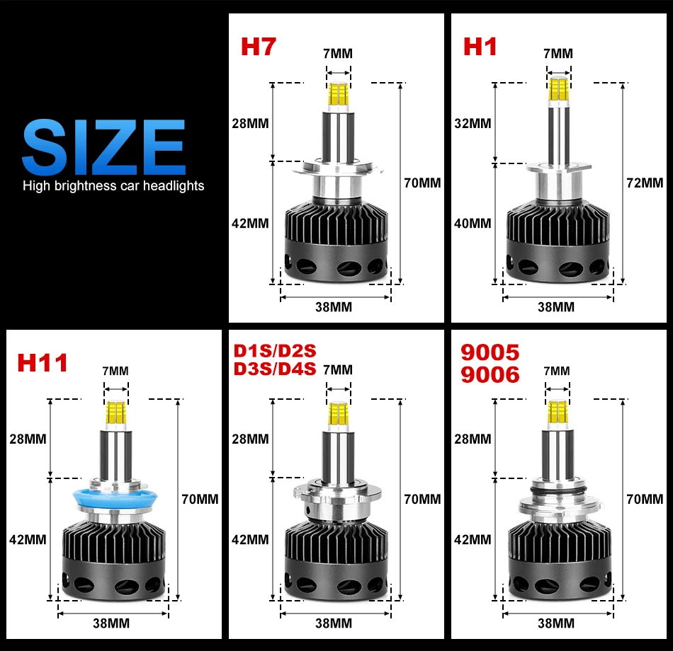 Hlxg 12 Сторон D2S H7 светодиодный 30000LM H11 светодиодный H1 9005 9006 HB4 HB3 H8 H9 D3S D4S D1S Авто 12V 24V Высокий Низкий Луч супер яркий CSP светодиодный