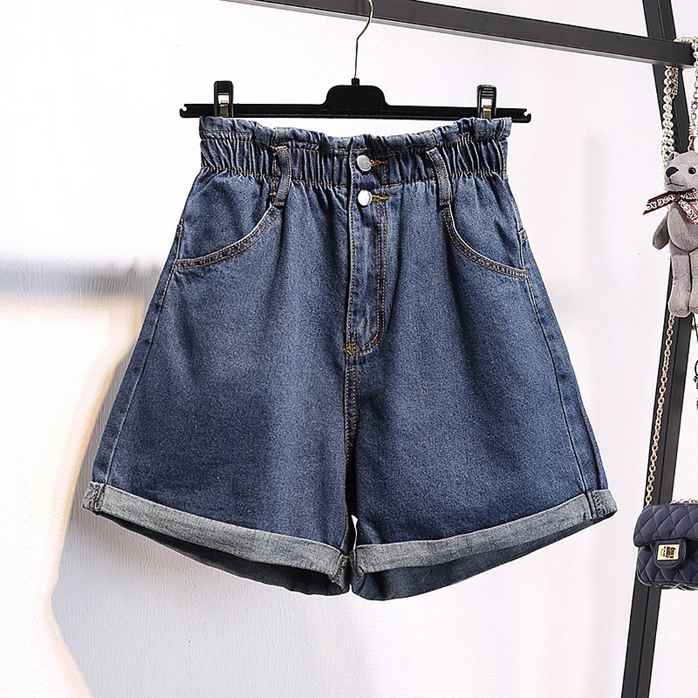 Модные женские хлопковые шорты с высокой талией и широкими штанинами размера плюс, летние джинсы