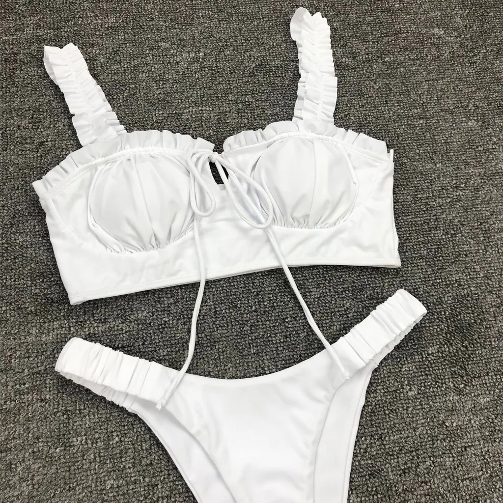 Дизайн: с рюшами и оборками; С регулируемыми завязками на шее и спине; Со съемным пуш-ап верхом на подкладке; С принтом; С подкладкой