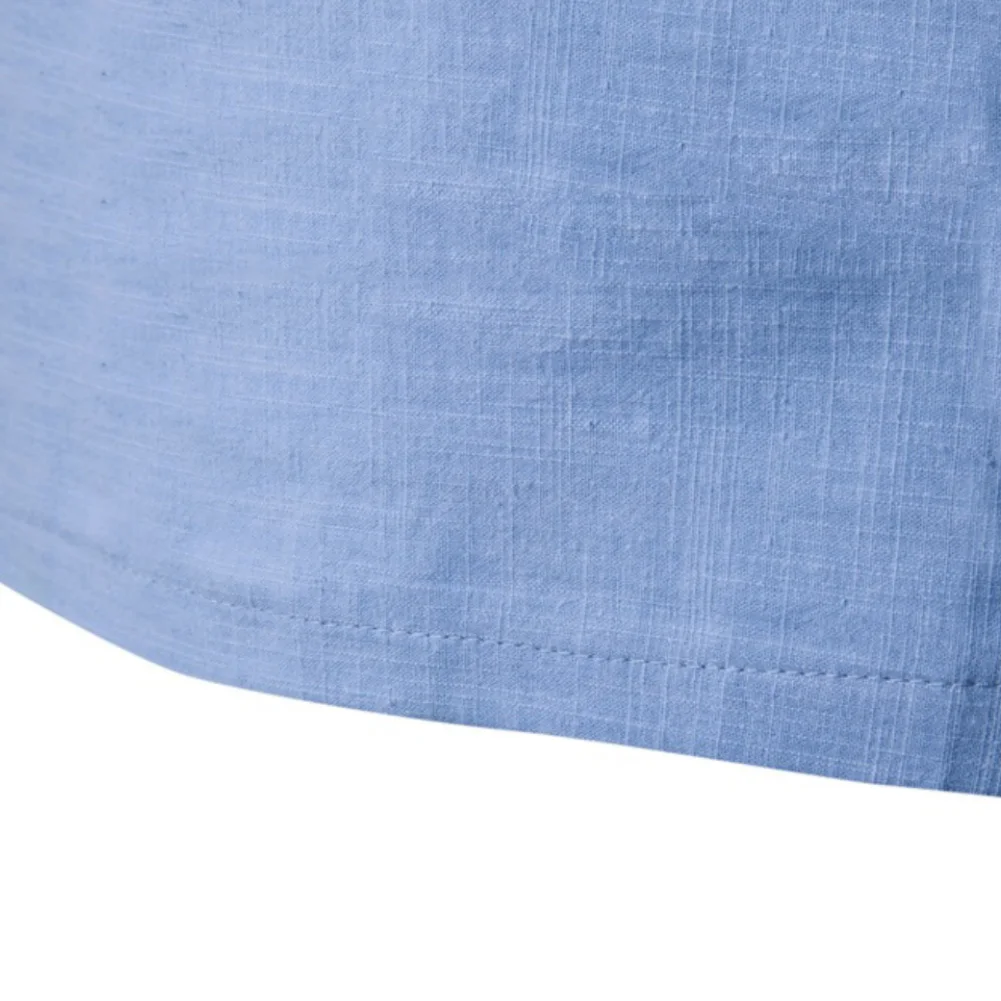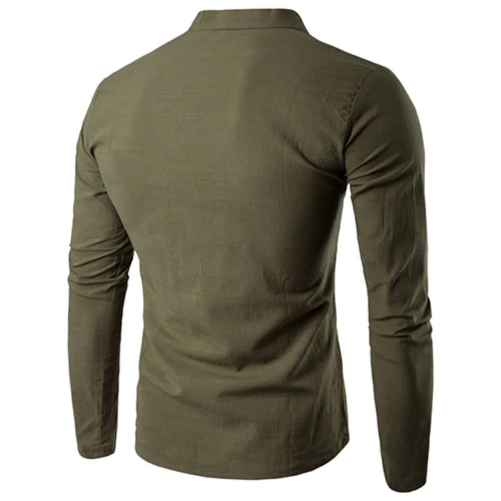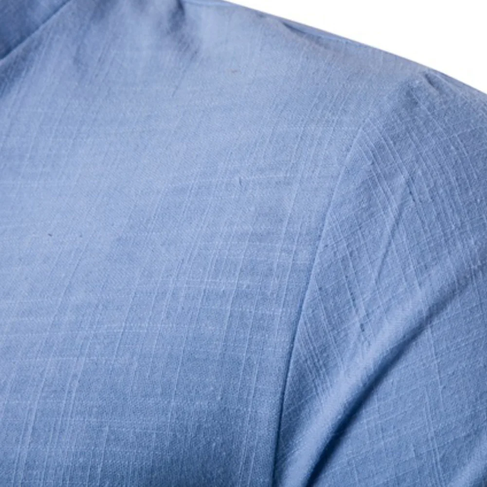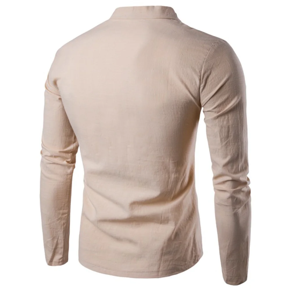 Мужская хлопковая льняная рубашка в китайском стиле с пуговицами и v-образным вырезом, длинным рукавом и воротником-стойкой