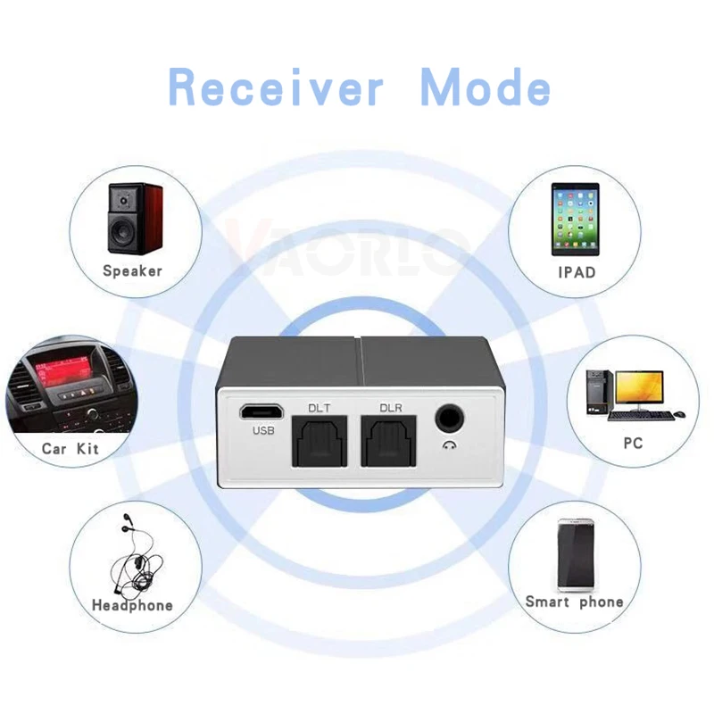 Частота: от 2,402 до 2,480 ГГц Версия Bluetooth: CSR BC8675, V5.0, класс II Кодек: aptX с низкой задержкой, aptX, aptX HD,SBC, AAC, Fast Stream Поддерживаемые ПИН-коды: 0000/1111/1234/8888 Время работы: около 20 часов Время зарядки: 2 часа Размер: 57 мм * 53 мм * 20 мм Цвет: черный Посылка включает в себя: 1 х аудио адаптер VAORLO Bluetooth 1X3,5 мм аудио кабель 1 х USB кабель для зарядки 1 X Руководство пользователя 1 X Розничная коробка Примечание: Операции, указанные ниже, могут привести к тому, что воспоминания о устройствах, которые он подключил перед: 1. При зарядке Включите или выключите трансивер. 2. Переключение между передатчиком и приемником. 3. Кнопки переключения песен и регулировки томов поддерживают только использование в режиме RX (приемник). 4. Когда вы включите это устройство, и если он не может работать, пожалуйста, попробуйте зарядить его и перезагрузить его, нажмите кнопку MF в течение 8-10 секунд. 5. Пожалуйста, дайте нам знать, если у вас есть какие-либо проблемы, мы предоставим вам лучший сервис и решим проблему как можно скорее. Большое спасибо.