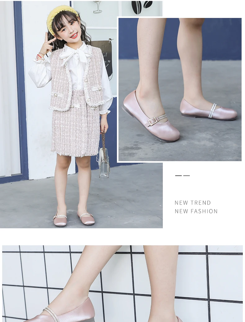 Весна 2020; Детская обувь принцессы для маленьких девочек; Розовые туфли из искусственной кожи на плоской подошве; Детская обувь с бантом; Брендовая обувь со стразами; Модная обувь Mary Jane; Новинка