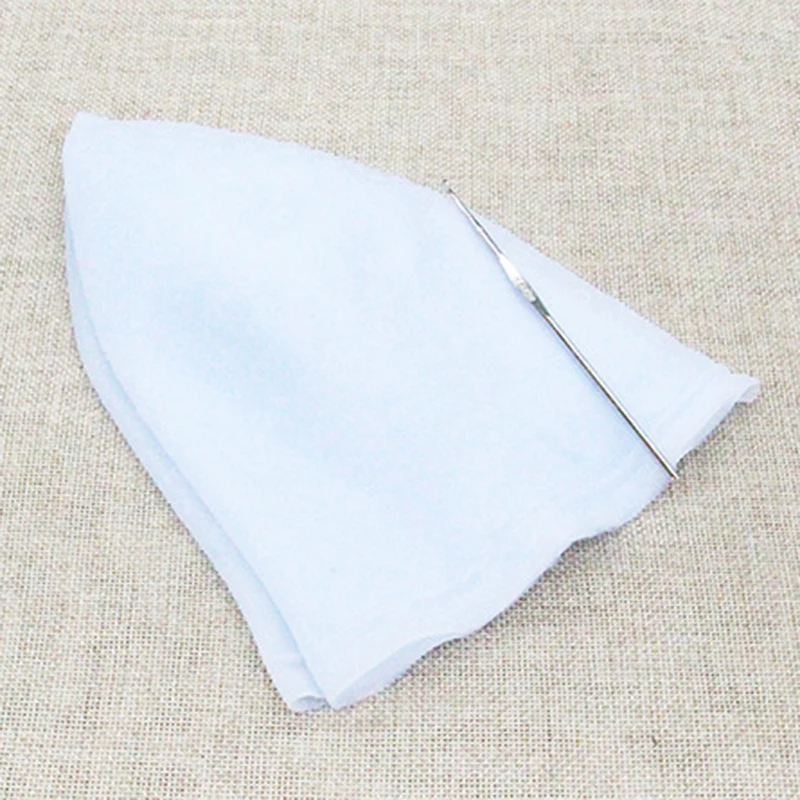 Колпачок поставляется с закругленным металлическим крючком, который используется для вытяжки волос через готовые перфорации в колпачке.