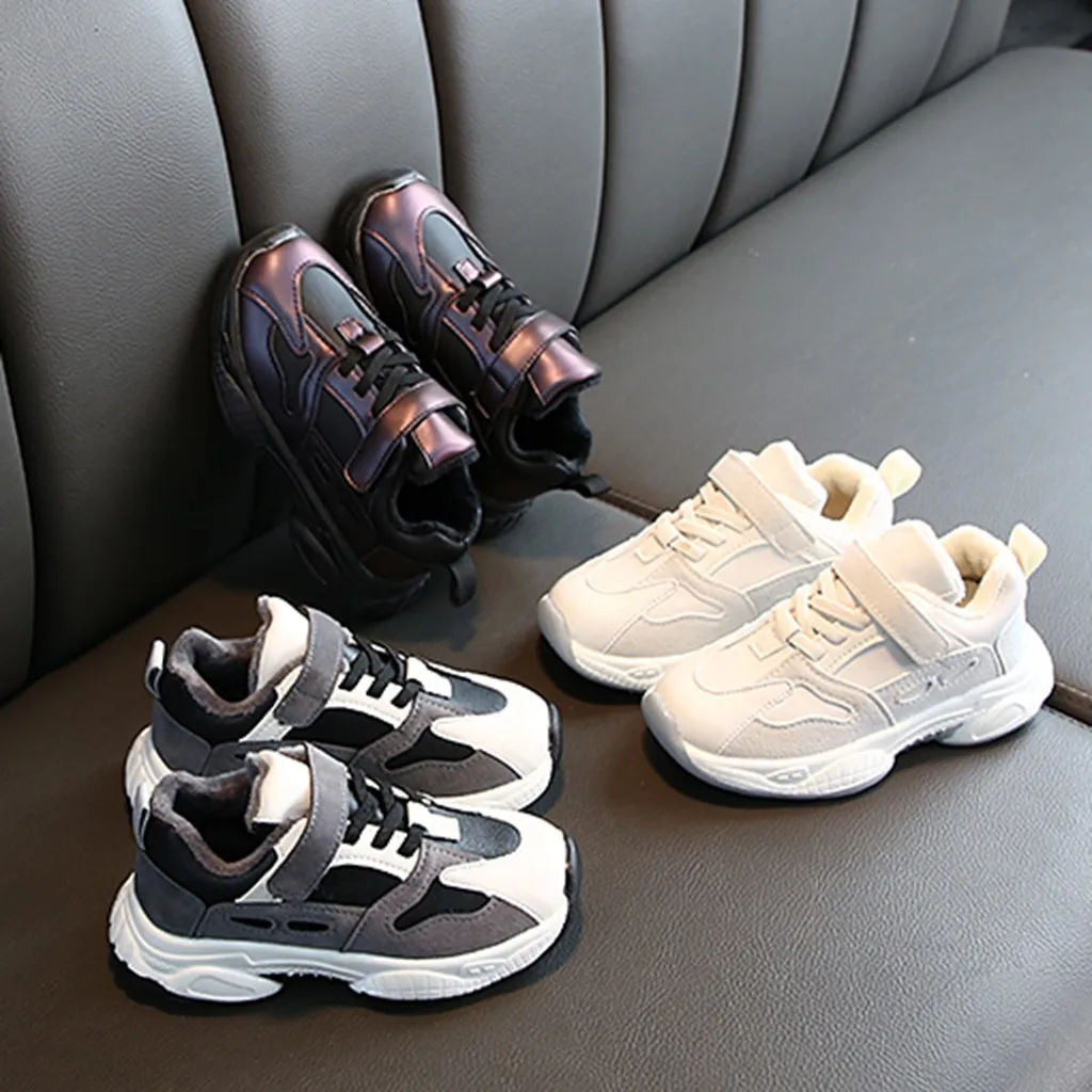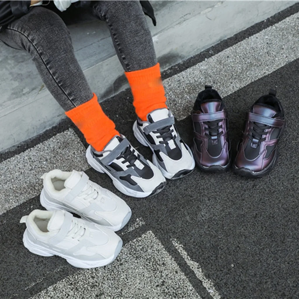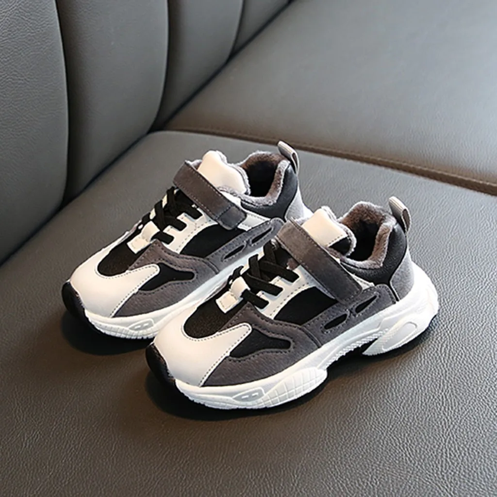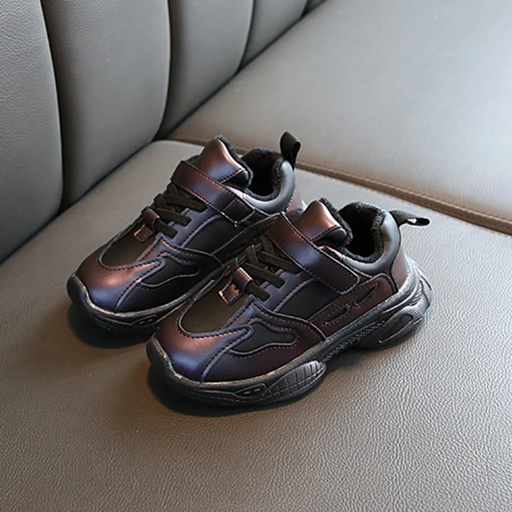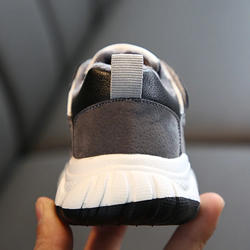 Теплые спортивные кроссовки с нашивками для маленьких мальчиков и девочек; повседневная обувь