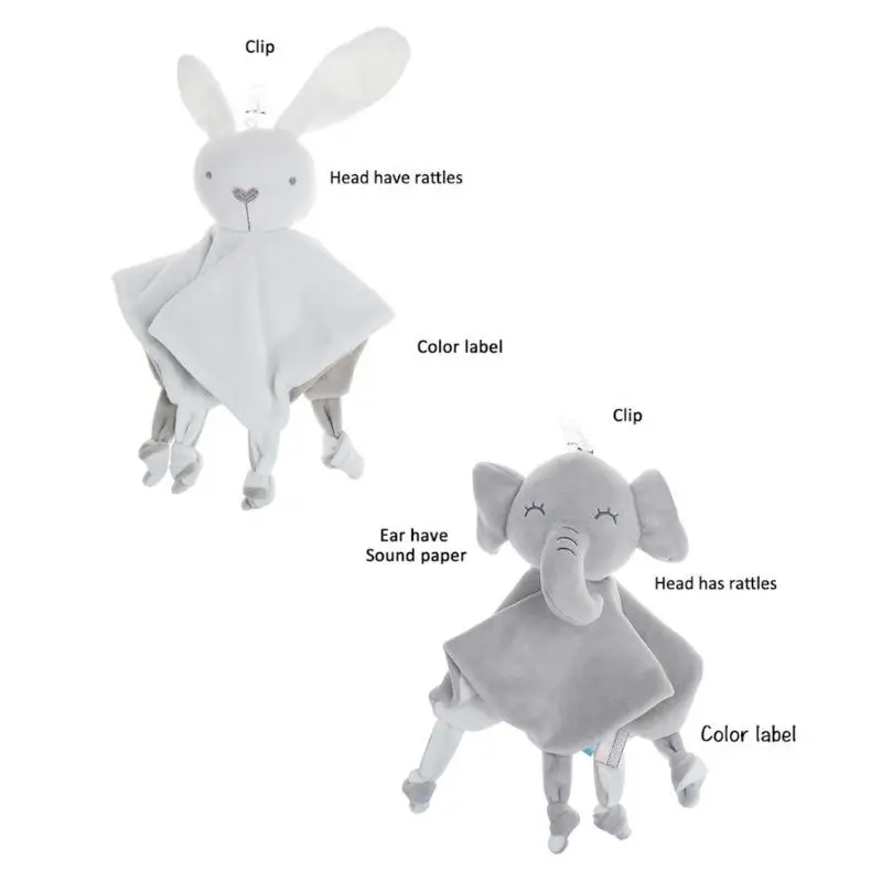У животного есть Колокольчик в голове; У слона есть кольцевая бумага в ухе; Когда ребенок трясет полотенце, появляется звук.