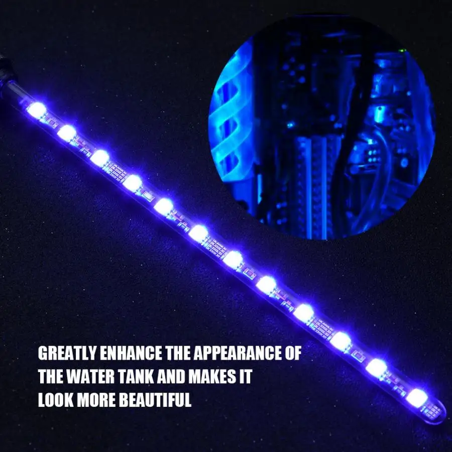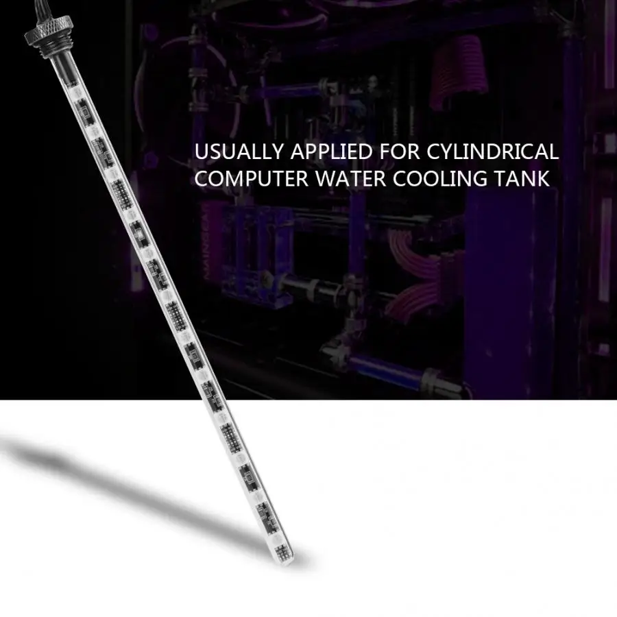 22 см ламповая трубка с RGB цветом освещения с пультом дистанционного управления. Обычно применяется для цилиндрического компьютера резервуара для охлаждения воды. Эта Светодиодная лампа может быть глубоко внутри резервуара, чтобы обеспечить непрерывный светильник. Это также значительно улучшает внешний вид резервуара для воды и делает его более красивым. Желаемый аксессуар для вашего компьютера.