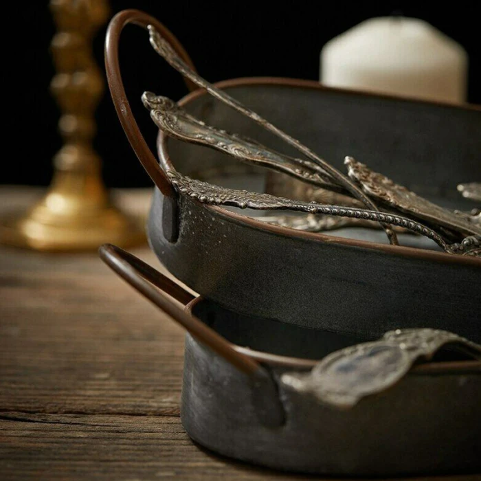 Description HOT Vintage Style Metal Serving Tray Basket French Country Dishes Shabby Rustic Home TI99