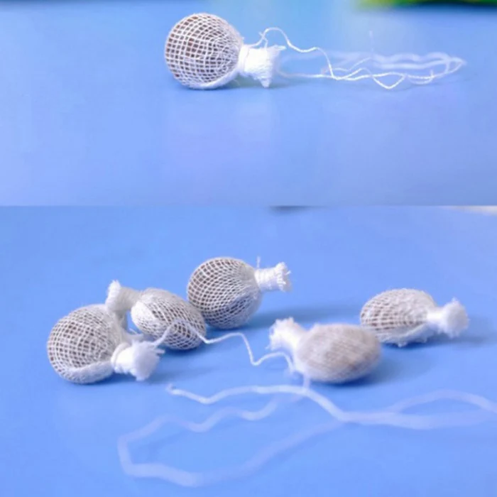 6. Удалите и замените каждый шар через 48 часов. При снятии, просто медленно вытяните хлопчатобумажную нить, шарик выскользнет из тела