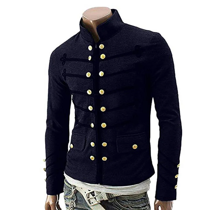 JODIMITTY 2020VВходОднотонная Мужская Готическая куртка, стимпанк туника, рок-платье, Униформа, Мужская винтажная панк металлическая военная куртка, верхняя одежда