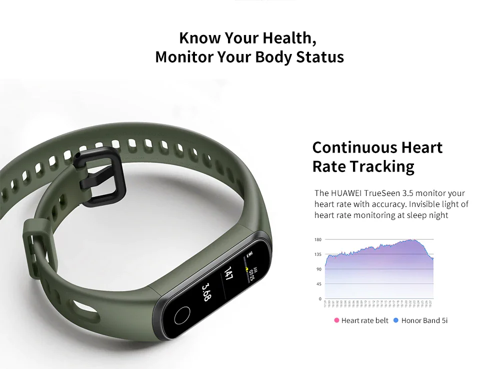 HUAWEI TrueSeen 3,5 отслеживает частоту сердечных сокращений с точностью. Невидимый свет мониторинга сердечного ритма в ночное время сна.