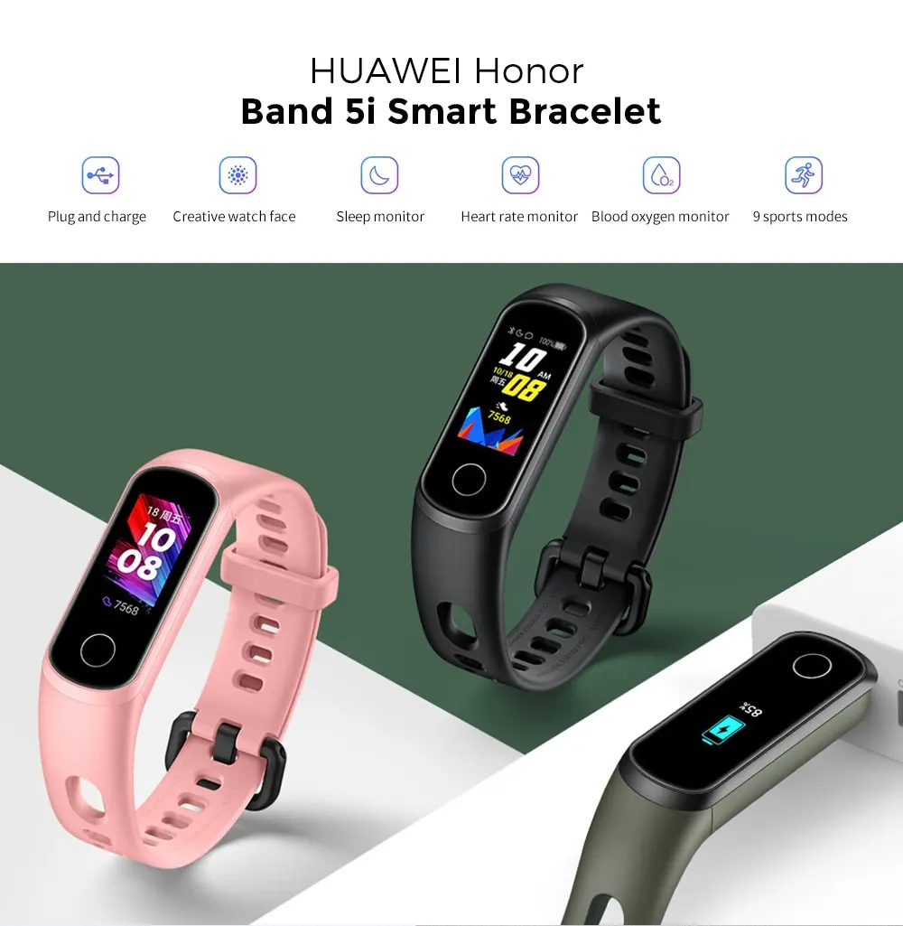 Huawei Honor Band 5i смарт-браслет Global Vers, трекер кислорода в крови AMOLED, часы для сна, фитнеса, плавания, спорта, бега, трекер