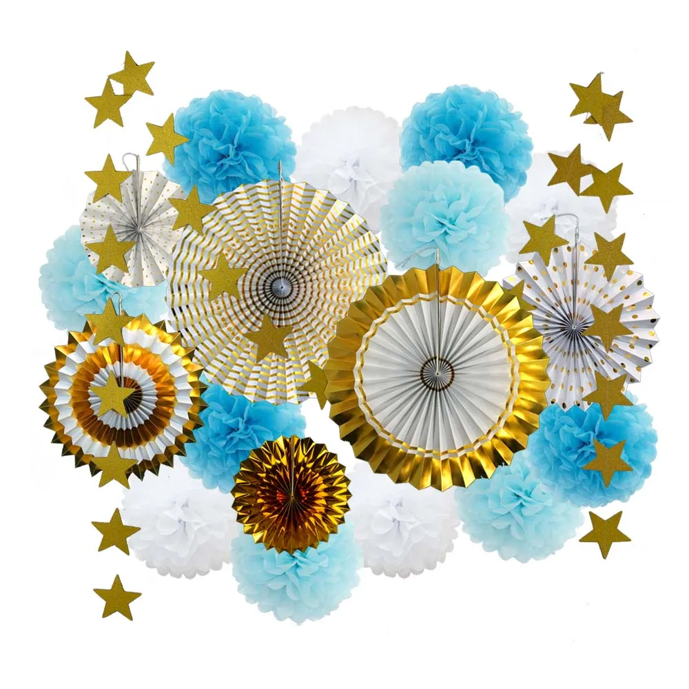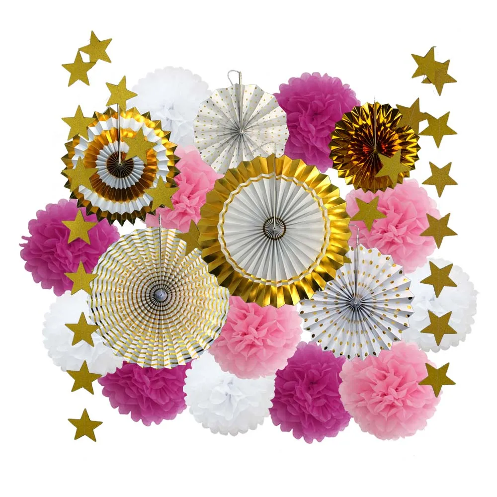 Название: 19 шт./компл. золотые бумажные вентиляторы с помпоном.
