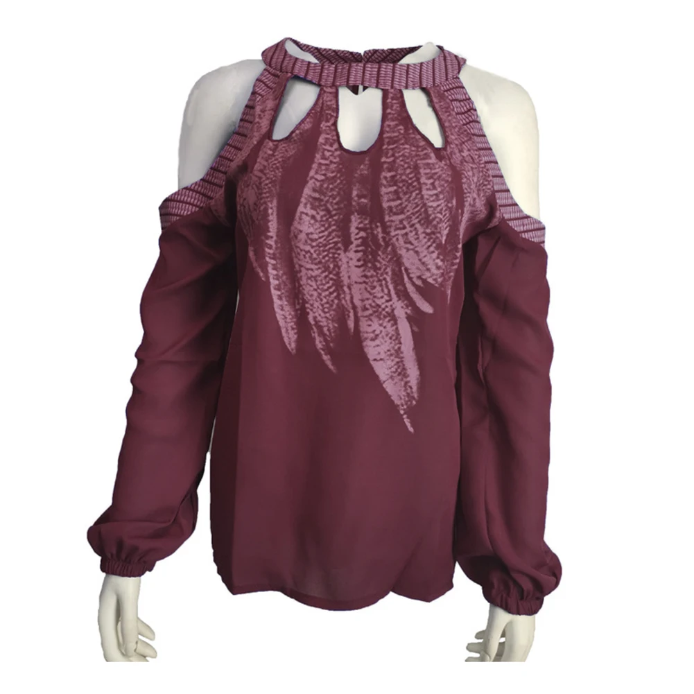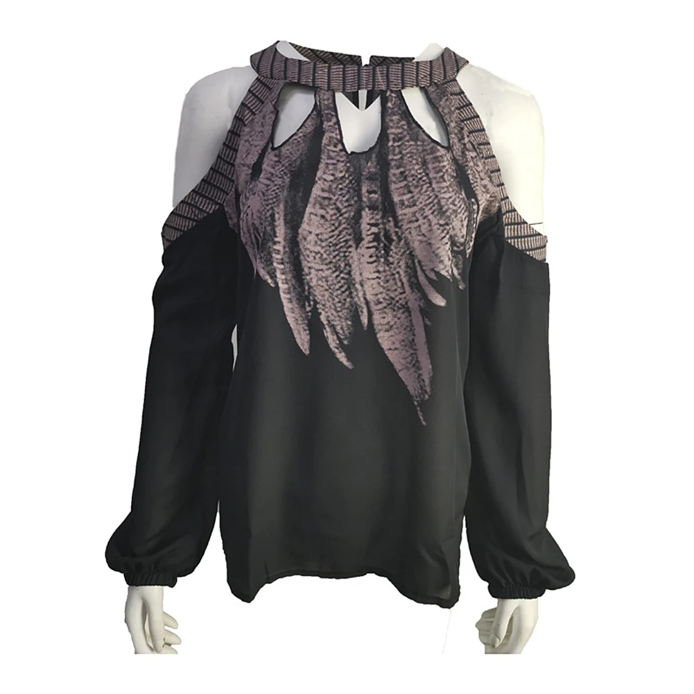 -Специальная блузка с принтом в виде перьев, придающая стильный вид.
