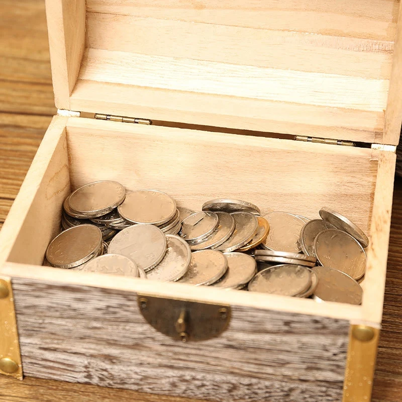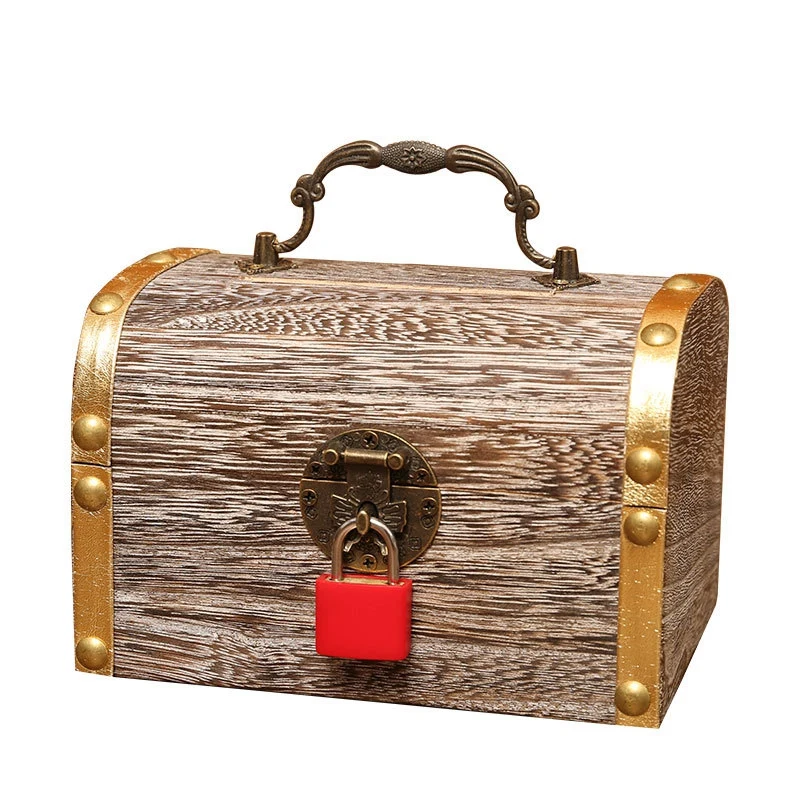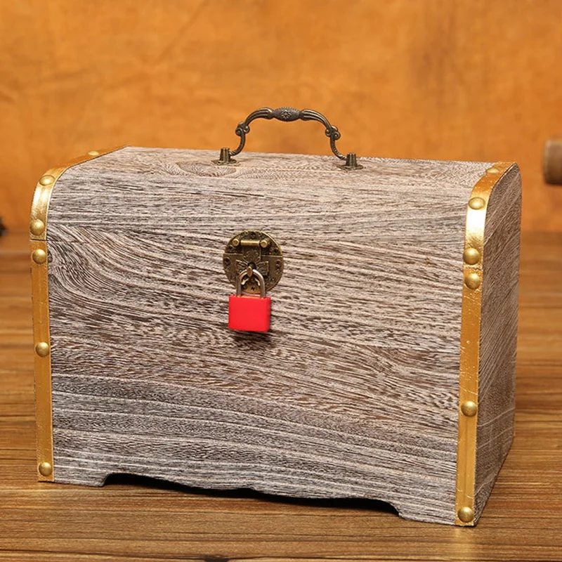 Retro Piggy Bank Wooden Manual Password Copper Lock Children Coin Box Large Capacity Banknotes and Coins Safe Money Box Money