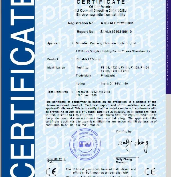 Деталь спецификации Часть № FY104 Цвет чисто белый, Изготовитель чипа Phlatlight Люмен 400lm Мощность 3 Вт @ 1,0a Мощность питания постоянного тока 3,8-4,1 v литий-ионный аккумулятор 18650 Ультратонкое естественное освещение CRI >80 Диапазон CCT 6000k (чистый белый) Контроллер Off-on, и нажмите переключатель с низкой освещенности 10%(12hrs)-100%(3hrs) рециркулирует Луминация ③ 43000 люкс с 4 мм ENT