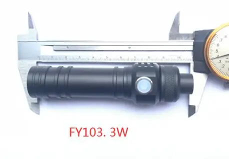 Деталь спецификации Часть № FY103 Цвет чисто белый, Изготовитель чипа Phlatlight Люмен 400lm Мощность 3 Вт @ 1,0a Мощность питания постоянного тока 3,8-4,1 v литий-ионный аккумулятор 18650 Ультратонкое естественное освещение CRI >80 Диапазон CCT 6000k (чистый белый) Контроллер Off-on, и нажмите переключатель с низкой освещенности 10%(12hrs)-100%(3hrs) рециркулирует Луминация ③ 72000 люкс с 4 мм ENT