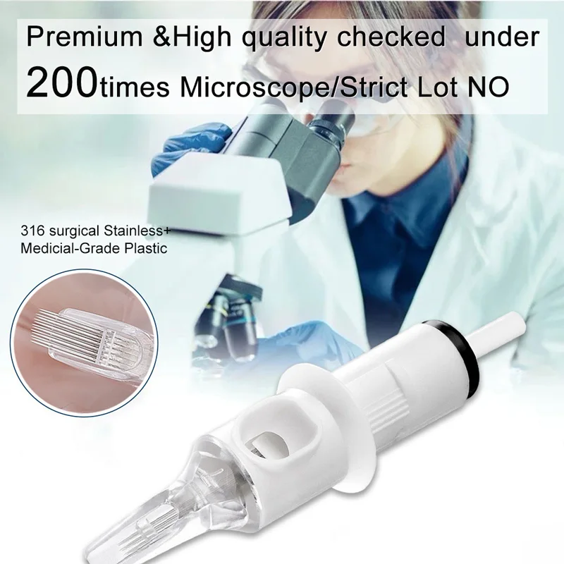 -- Точно подходит для групп игл каждый раз. -- Гладкие края устраняют дополнительные травмы. -- Иглы изготовлены из нержавеющей стали 316 медицинского класса. -Он работает практически со всеми видами тату-машин. -- Изготовлен из точной формы, тонкой конфигурации татуировки. -- Низкий уровень шума при татуировке, отличный подарок для татуировщика. -Подходит для бровей, век, губ и тату-дизайна. -- 100% E.O газовая стерилизованная упаковка, не беспокойтесь о заражении, безопасна в использовании. -- ABS материал, медицинские пластиковые наконечники, стабильная работа и высокое качество.