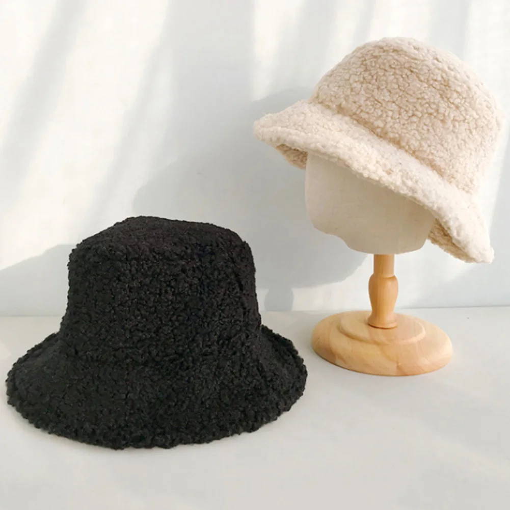 Зимняя женская однотонная мягкая теплая шапка из искусственной овечьей шерсти для рыбалки, шляпа-ведро от солнца