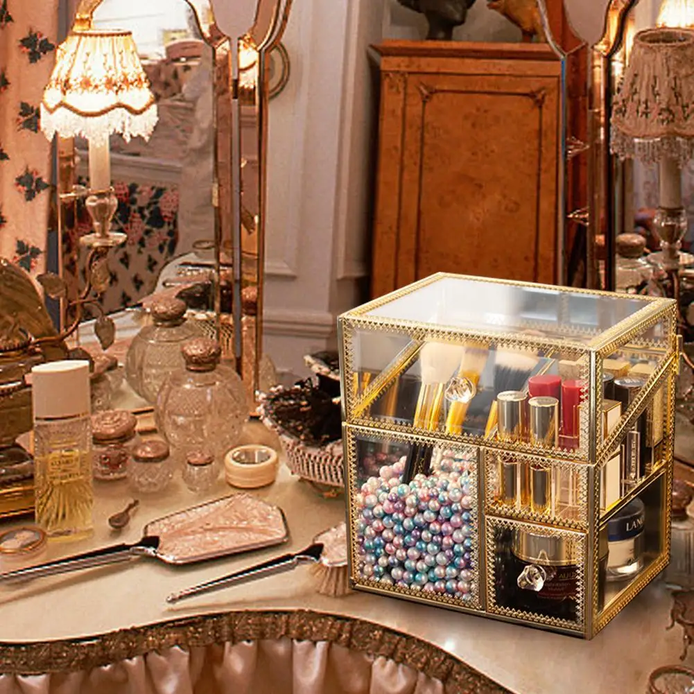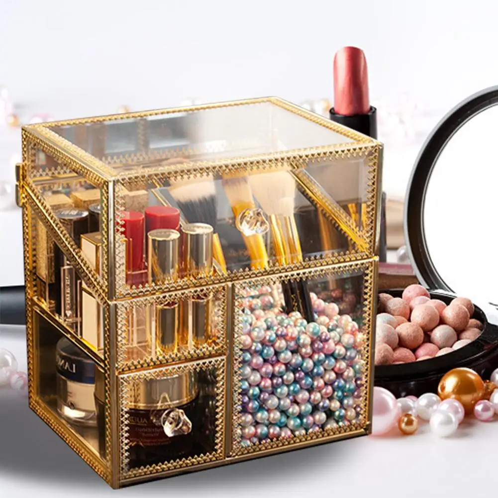 Органайзер для макияжа/Шкатулка для ювелирных изделий/косметический Органайзер с выдвижными ящиками/хранилище для макияжа * 1 + Бесплатный белый жемчуг