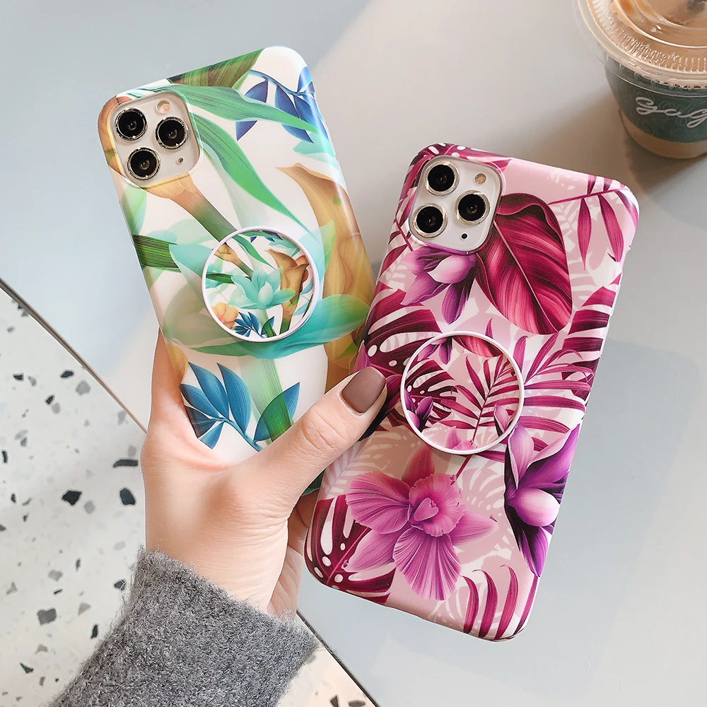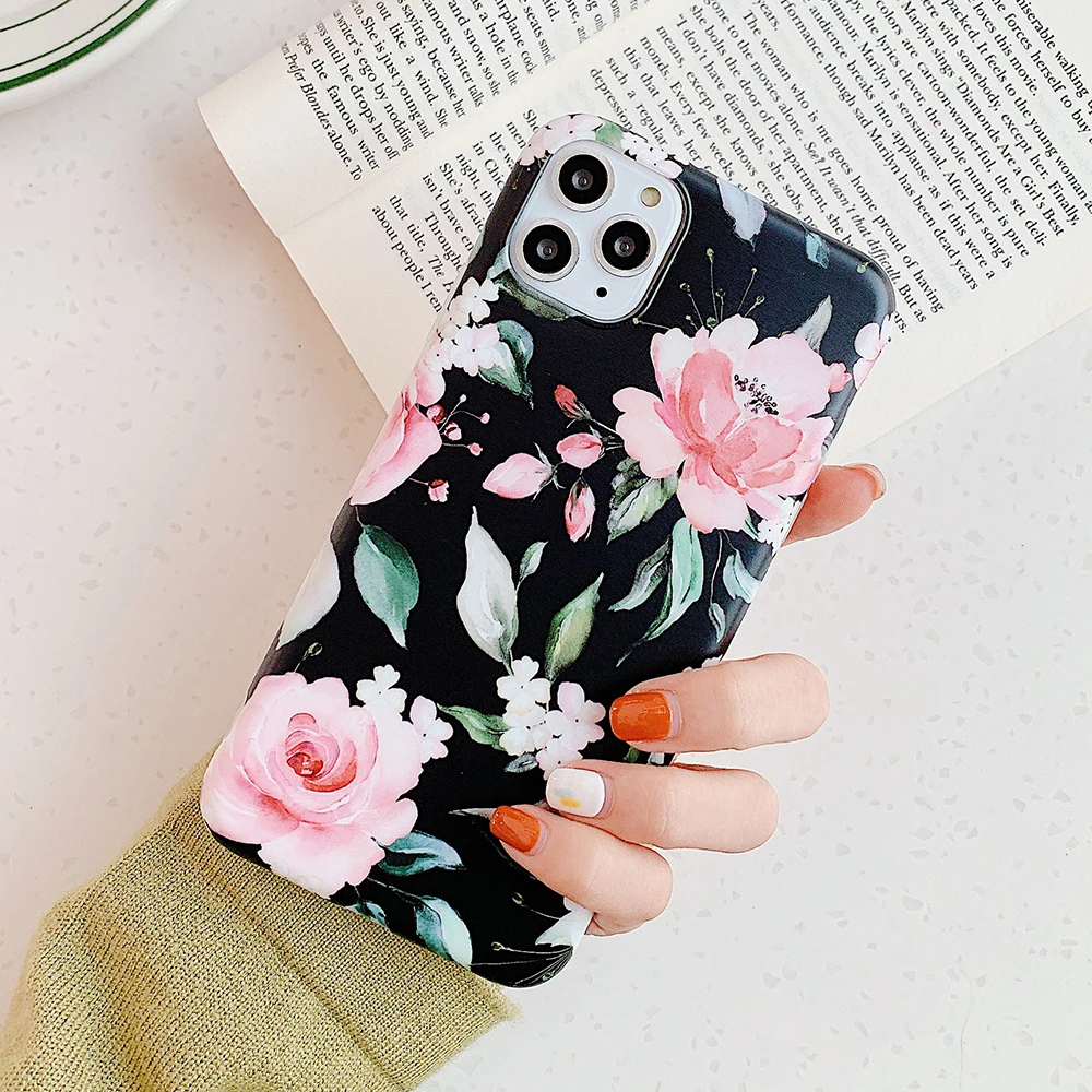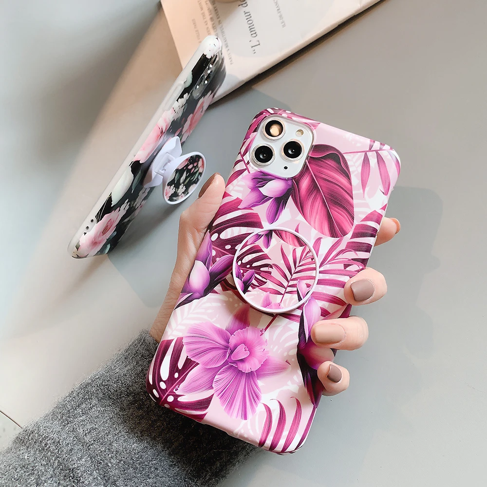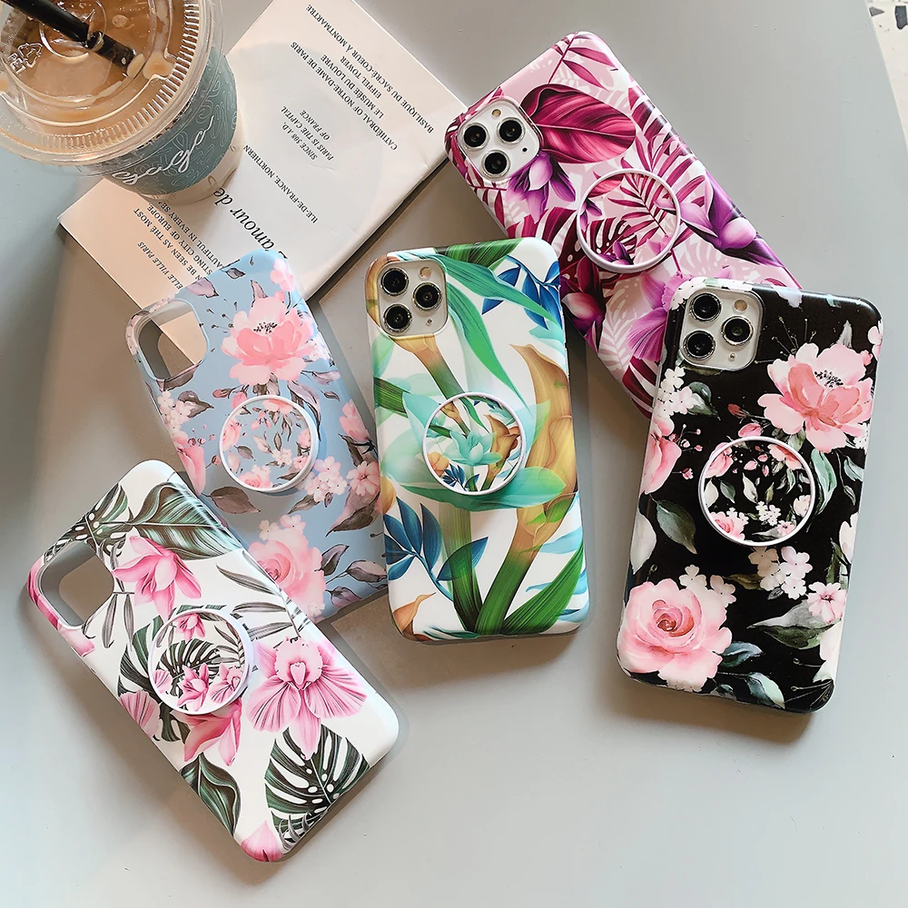 Винтажный чехол для iPhone 11 Pro Max XR X XS Max 7 8 6 Plus с цветочным узором и подставкой, мягкий IMD чехол для телефона
