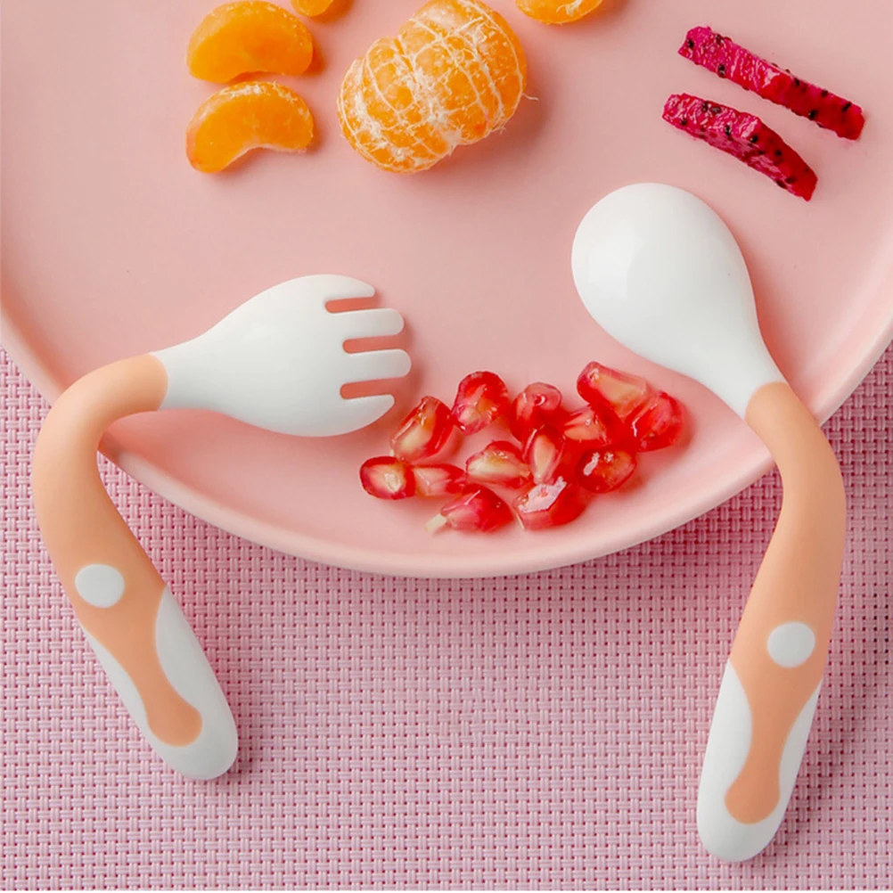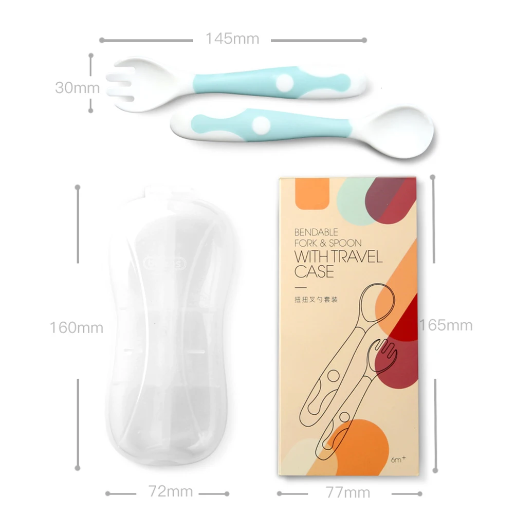 Детская посуда набор ложка и вилка для кормления безопасный для путешествий Чехол для детей ясельного возраста Легкая ручка термостойкая детская ложка для кормления