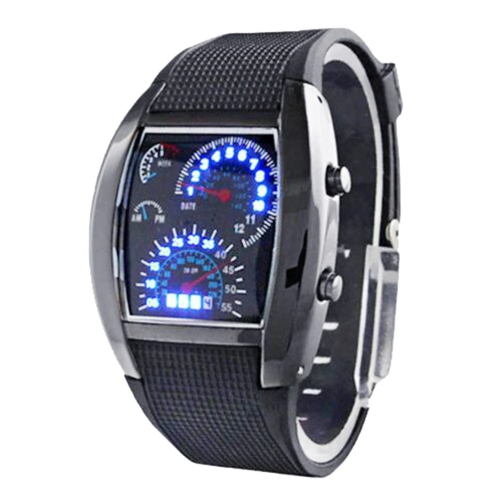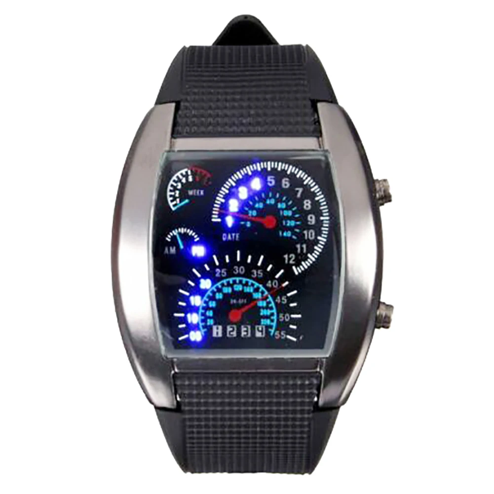 Мужские часы с квадратным циферблатом и двойным дисплеем, силиконовый ремешок, светодиодный, спортивные часы, электронные наручные часы, новинка, reloj hombre