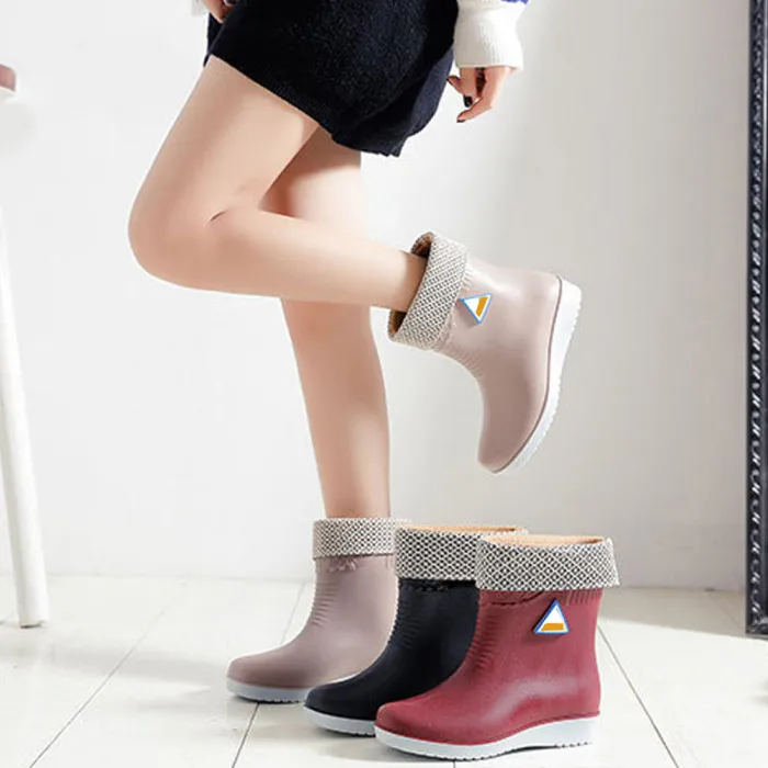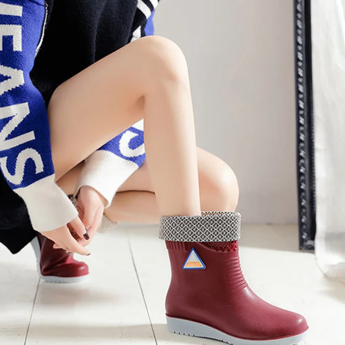 Женские зимние водонепроницаемые резиновые сапоги, уличные Нескользящие ботильоны на плоской подошве